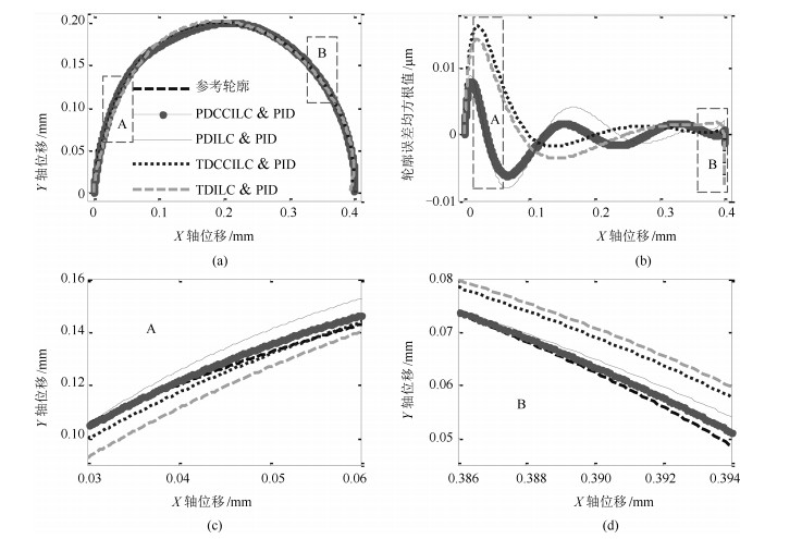 针对多轴运动系统非线性轮廓的重复跟踪,传统时域交叉耦合迭代学习控制器(Cross-coupled iterative learning control,CCILC)的设计,各轴间的耦合算子计算精度要求高,计算效率低.本文提出一种主从交叉耦合迭代学习控制方法.基于主从控制设计方法,主动轴采用时域CCILC,从动轴采用位置域交叉耦合迭代学习控制(Position domain CCILC,PDCCILC).保证各轴间运动同步性,同时减轻对耦合算子精确性的依赖.因而可以引入轮廓误差矢量法估算耦合算子提高计算效率.采用Lifting的系统时域矩阵展开方法对所提出的算法进行了稳定性分析和性能分析.基于一个两轴毫米级运动平台,三种典型非线性轮廓跟踪(即半圆、抛物线和螺旋线)的数值仿真和实验分析验证了所提出算法的有效性.
