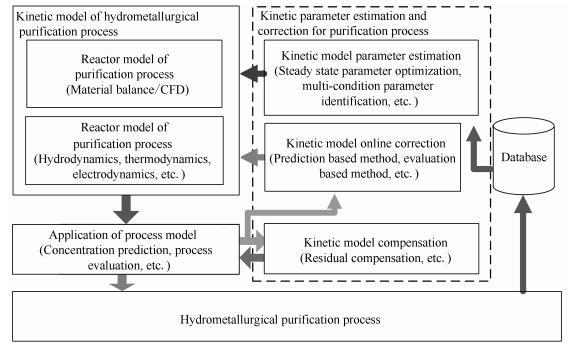 净化过程是有色金属湿法冶炼的关键工序.它通过置换沉淀的方式去除有色金属矿物浸出液中的杂质金属离子,为后续电解过程提供高纯度的金属电解液,其控制效果直接影响最终金属产品的质量、生产成本以及生产全流程的稳定性.目前,入矿来源混杂、反应机理复杂等因素制约了净化过程的高效和绿色生产.从净化过程工艺与反应机理的特点出发,提炼了净化过程各除杂工段在建模和优化控制中的共性问题,对净化过程建模与优化控制方法的研究现状进行了综述,并以湿法炼锌净化过程为例,较详细地介绍了在沉铁、除铜、除钴工序建模和优化控制方面的最新研究成果.最后结合自动化技术的发展新动向,对湿法冶金净化过程自动化的未来发展趋势进行了展望.