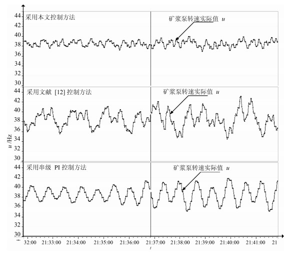 赤铁矿再磨过程是以矿浆泵频率为输入、以给矿压力为内环输出、以泵池液位为外环输出的强非线性串级工业过程.当赤铁矿粒度分布大范围变化,导致一段磨矿与磁选矿浆流量和再磨排矿流量频繁波动,使泵池液位频繁波动,造成内外环频繁波动.本文将上述动态特性变化用未建模动态来描述,通过设计消除前一时刻未建模动态补偿信号叠加于基于线性模型设计的反馈控制器,采用一步最优前馈控制律和提升技术,提出了泵池液位和给矿压力双速率区间控制算法.给出了所提控制算法的稳定性和收敛性分析,通过半实物仿真实验表明所提出的控制算法可以将处于频繁随机波动的泵池液位和给矿压力变化率控制在目标值范围内.