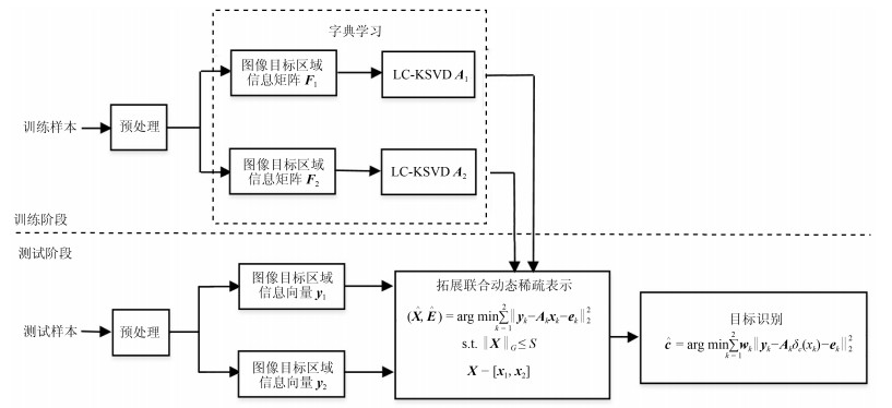 提出了一种基于字典学习和拓展联合动态稀疏表示的合成孔径雷达(Synthetic aperture radar, SAR)图像的目标自动识别(Automatic target recognition, ATR)方法.首先, 在图像预处理时, 分割出目标区域和目标遮挡地面形成的阴影区域, 将这两个区域的信息结合起来能更好地表示图像.其次, 将字典学习方法LC-KSVD (Label consistent k-singular value decomposition)引入到训练阶段中, 分别学习目标区域和阴影区域的特征字典, 而不是直接将所有训练样本作为固定字典.最后, 在测试阶段提出了拓展联合动态稀疏表示算法, 使图像数据中的两个特征共享相似但不完全相同的稀疏模式, 还可处理图像噪声遮挡损坏问题.标准数据集上的实验结果表明, 该方法使不同类别更具区分性, 有效地提高了SAR图像的目标识别准确度.