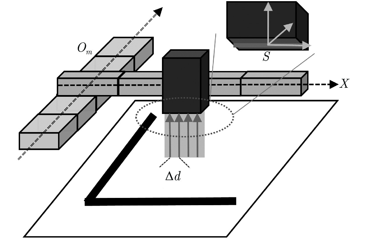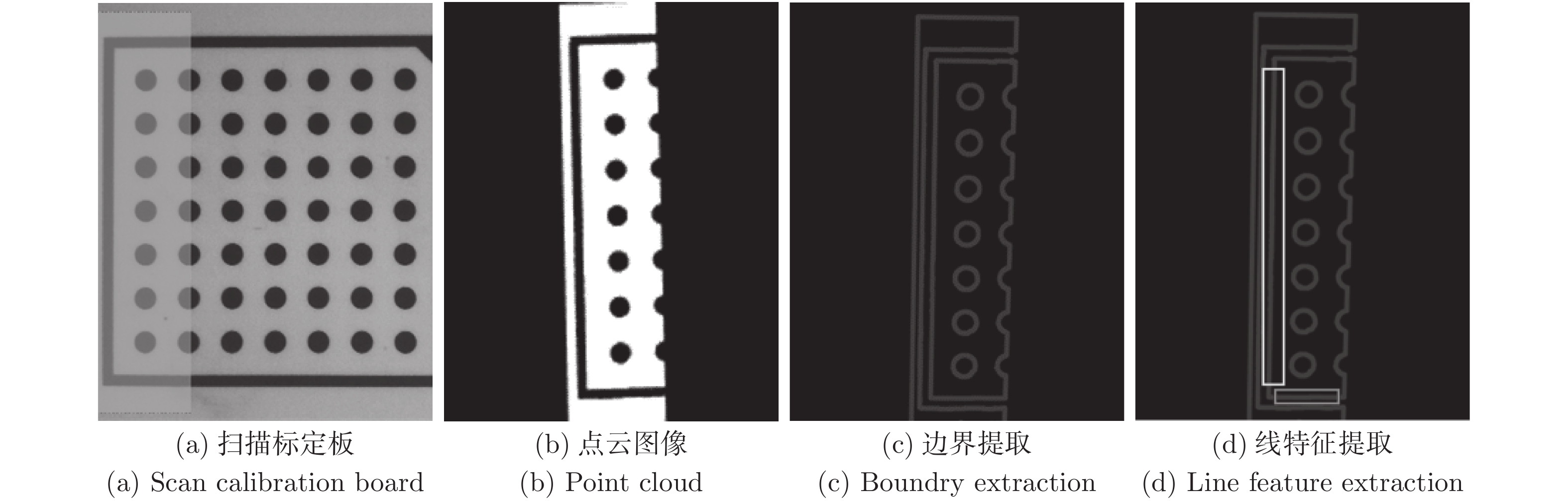 为了解决人造特征点标定法中特征匹配不精确等缺陷, 本文针对二轴传动的高精度平面激光扫描机构提出了利用线特征的垂直约束进行外参标定的新算法. 不仅如此, 在该算法中为了简化建立标定方程的流程, 避免计算与标定目标无关的冗余中间量, 提出了一种快速确定标定方程参数的方法. 首先将扫描结果按待标定参数标准值转换至同一坐标系形成点云, 再提取其中的线特征; 接着根据线特征的垂直约束建立外参方程, 并根据线特征的测量值和实际值间的转换计算方程参数; 最终, 将多次测量得到的方程组求解转化为最优化问题, 并得到外参的数值解. 在对比实验中, 本算法比基于特征点的标定方法表现更好.