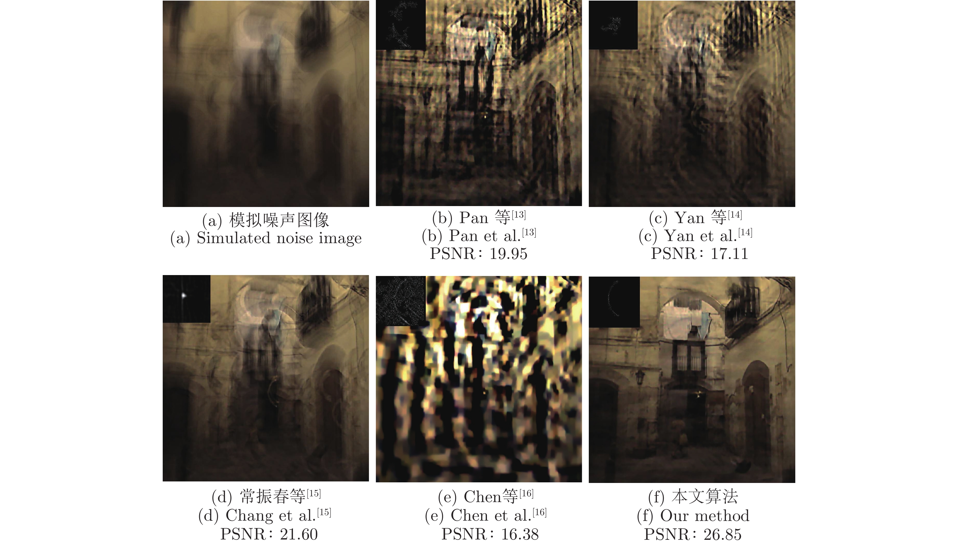 在模糊核未知的情况下对模糊图像进行复原称为盲解卷积问题, 这是一个欠定逆问题, 现有的大部分盲解卷积算法利用图像的各种先验知识约束问题的解空间. 由于清晰图像的跨尺度自相似性强于模糊图像的跨尺度自相似性, 且降采样模糊图像与清晰图像具有更强的相似性, 本文提出了一种基于跨尺度低秩约束的单幅图像盲解卷积算法, 利用图像跨尺度自相似性, 在降采样图像中搜索相似图像块构成相似图像块组, 从整体上对相似图像块组进行低秩约束, 作为正则项加入到图像盲解卷积的目标函数中, 迫使重建图像的边缘接近清晰图像的边缘. 本文算法没有对噪声进行特殊处理, 由于低秩约束更好地表示了数据的全局结构特性, 因此避免了盲解卷积过程受噪声的干扰. 在模糊图像和模糊有噪图像上的实验验证了本文的算法能够解决大尺寸模糊核的盲复原并对噪声具有良好的鲁棒性.