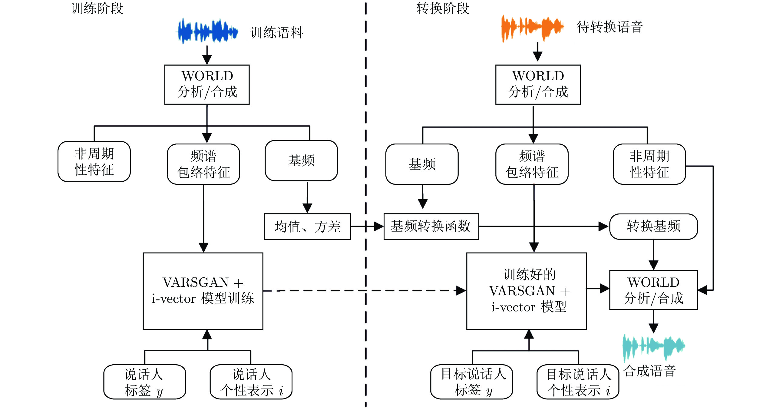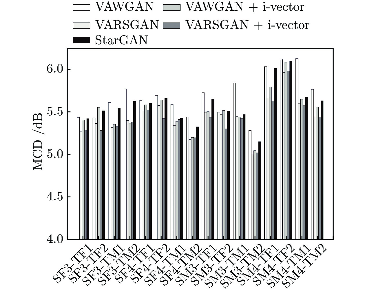 提出一种基于i向量和变分自编码相对生成对抗网络的语音转换方法, 实现了非平行文本条件下高质量的多对多语音转换. 性能良好的语音转换系统, 既要保持重构语音的自然度, 又要兼顾转换语音的说话人个性特征是否准确. 首先为了改善合成语音自然度, 利用生成性能更好的相对生成对抗网络代替基于变分自编码生成对抗网络模型中的Wasserstein生成对抗网络, 通过构造相对鉴别器的方式, 使得鉴别器的输出依赖于真实样本和生成样本间的相对值, 克服了Wasserstein生成对抗网络性能不稳定和收敛速度较慢等问题. 进一步为了提升转换语音的说话人个性相似度, 在解码阶段, 引入含有丰富个性信息的i向量, 以充分学习说话人的个性化特征. 客观和主观实验表明, 转换后的语音平均梅尔倒谱失真距离值较基准模型降低4.80%, 平均意见得分值提升5.12%, ABX 值提升8.60%, 验证了该方法在语音自然度和个性相似度两个方面均有显著的提高, 实现了高质量的语音转换.