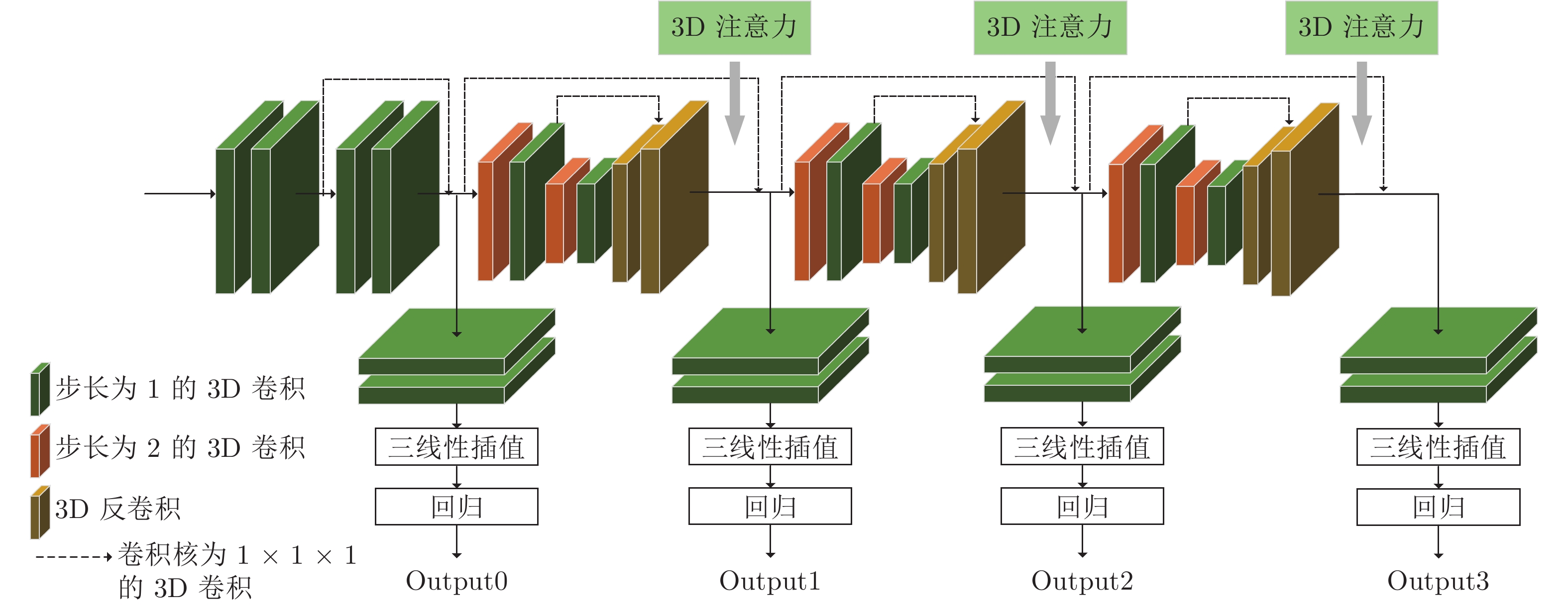 现有基于深度学习的立体匹配算法在学习推理过程中缺乏有效信息交互, 而特征提取和代价聚合两个子模块的特征维度存在差异, 导致注意力方法在立体匹配网络中应用较少、方式单一. 针对上述问题, 本文提出了一种多维注意力特征聚合立体匹配算法. 设计2D注意力残差模块, 通过在原始残差网络中引入无降维自适应2D注意力残差单元, 局部跨通道交互并提取显著信息, 为匹配代价计算提供丰富有效的特征. 构建3D注意力沙漏聚合模块, 以堆叠沙漏结构为骨干设计3D注意力沙漏单元, 捕获多尺度几何上下文信息, 进一步扩展多维注意力机制, 自适应聚合和重新校准来自不同网络深度的代价体. 在三大标准数据集上进行评估, 并与相关算法对比, 实验结果表明所提算法具有更高的预测视差精度, 且在无遮挡的显著对象上效果更佳.