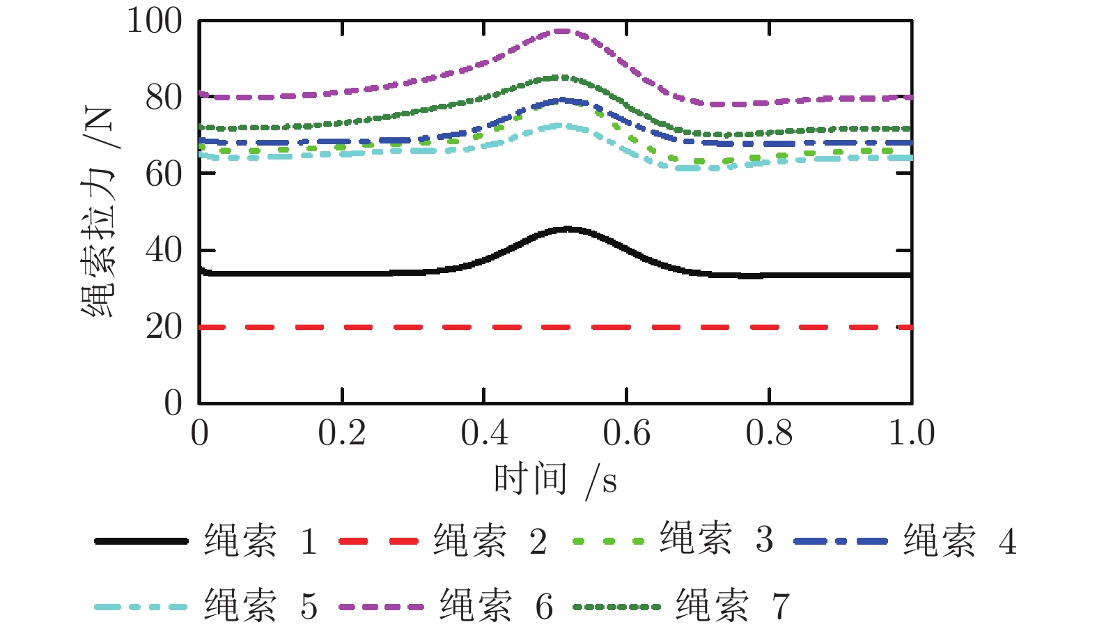 提出一种考虑输出约束的冗余驱动绳索并联机器人(Redundantly-actuated cable driving parallel robots, RCDPRs)预设性能有限时间控制算法. 首先, 采用Newton-Euler方程推导系统动力学模型, 并建立绳索拉力优化模型保证系统正常工作; 其次, 将输出约束问题转化为位置跟踪误差的坐标变换问题, 设计给定时间衰减函数与非对称变换函数, 将约束形式的跟踪误差转化为无约束变量, 实现给定时间的输出约束; 然后, 针对滑模控制的抖振问题, 在预设性能控制中采用模型不确定与扰动估计器进行扰动估计, 并通过自适应方法对扰动估计误差进行补偿; 以此为基础, 提出一种基于精度驱动且在分段点处三阶连续的终端滑模面进行控制算法设计; 最后, 采用Lyapunov函数证明算法的有限时间收敛特性, 并以7自由度冗余驱动绳索并联机器人为控制对象进行仿真研究, 对算法进行验证.