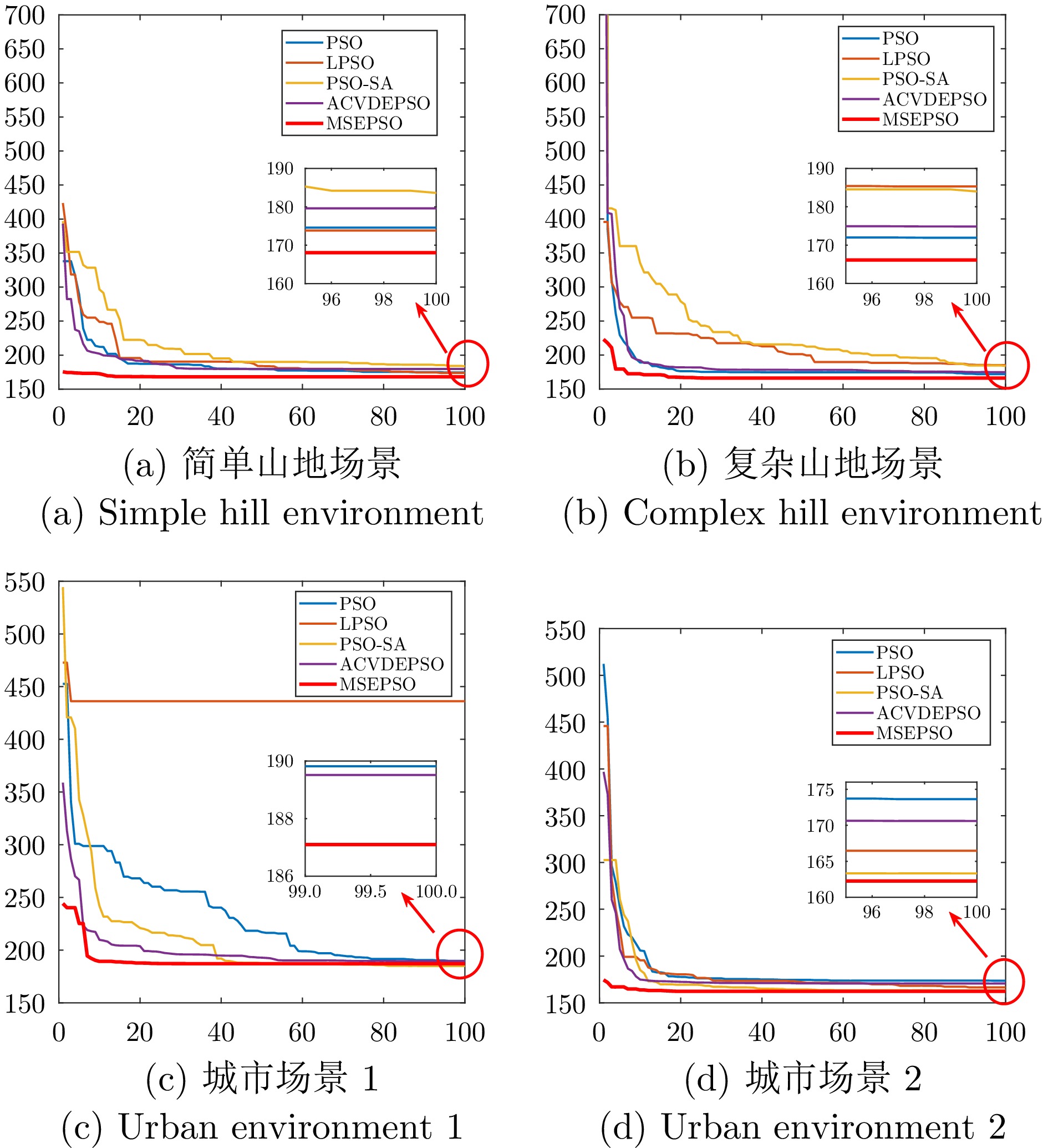 针对无人机(UAV)在三维多障碍物场景下路径规划存在的收敛精度低、稳定性不足等问题, 提出一种多策略进化粒子群算法(MSEPSO). 在初始化阶段, 针对粒子群算法(PSO)对粒子初始位置敏感的问题, 采用拉丁超立方采样(LHS)优化粒子初始分布, 提高种群多样性; 在进化阶段, 设计“平衡−记忆−增强”进化框架, 即利用非线性迭代策略来平衡全局开发和局部搜索, 采用个体历史记忆启发机制(PHMM)增强算法的全局开发能力, 并引入进化粒子, 增强种群对于群体极值附近空间的探索能力, 降低算法陷入局部最优的概率. 在CEC2020测试函数集上与山地/城市场景下的对比实验结果表明, MSEPSO展现出了稳定的寻优性能, 可以规划长度更短、平滑度更高的安全路径.