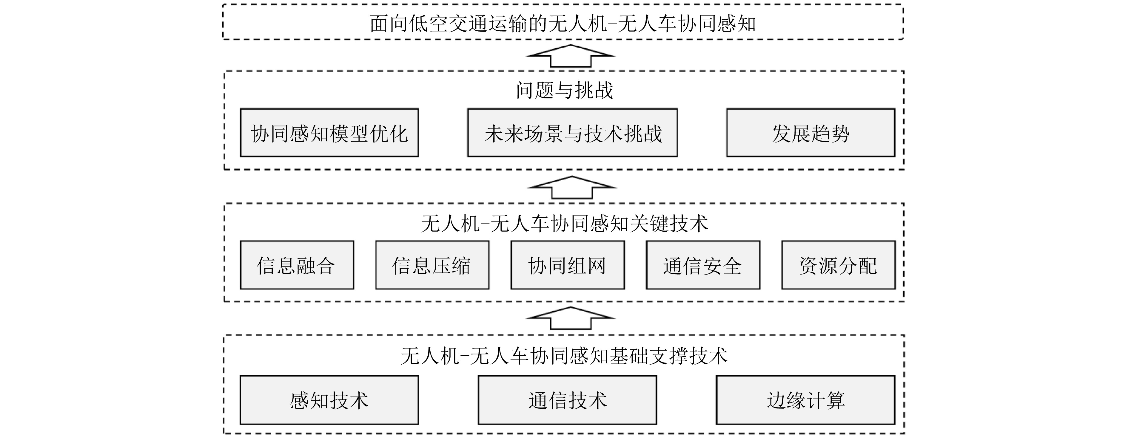 随着低空经济的兴起与智能交通的发展, 低空交通运输作为空地一体化的新兴交通系统, 对环境感知、通信与计算能力提出更高要求. 本文旨在全面阐述面向低空交通运输的无人机−无人车协同感知关键技术及发展趋势. 系统梳理协同感知的三类基础支撑技术, 包括基于LiDAR、视觉与多传感器融合的感知方法, C-V2X、5G、Wi-Fi等通信技术, 以及端−边−云协作的边缘计算架构. 在此基础上, 进一步总结协同感知信息融合、感知信息压缩与传输、协同组网、通信安全及资源分配等关键技术研究进展. 最后, 分析当前无人机−无人车协同感知系统在感知模型优化、未来应用场景等方面的挑战, 并对该领域的未来发展趋势进行探讨与展望, 以期为低空交通运输中多智能体协同感知系统的研究与落地应用提供参考.