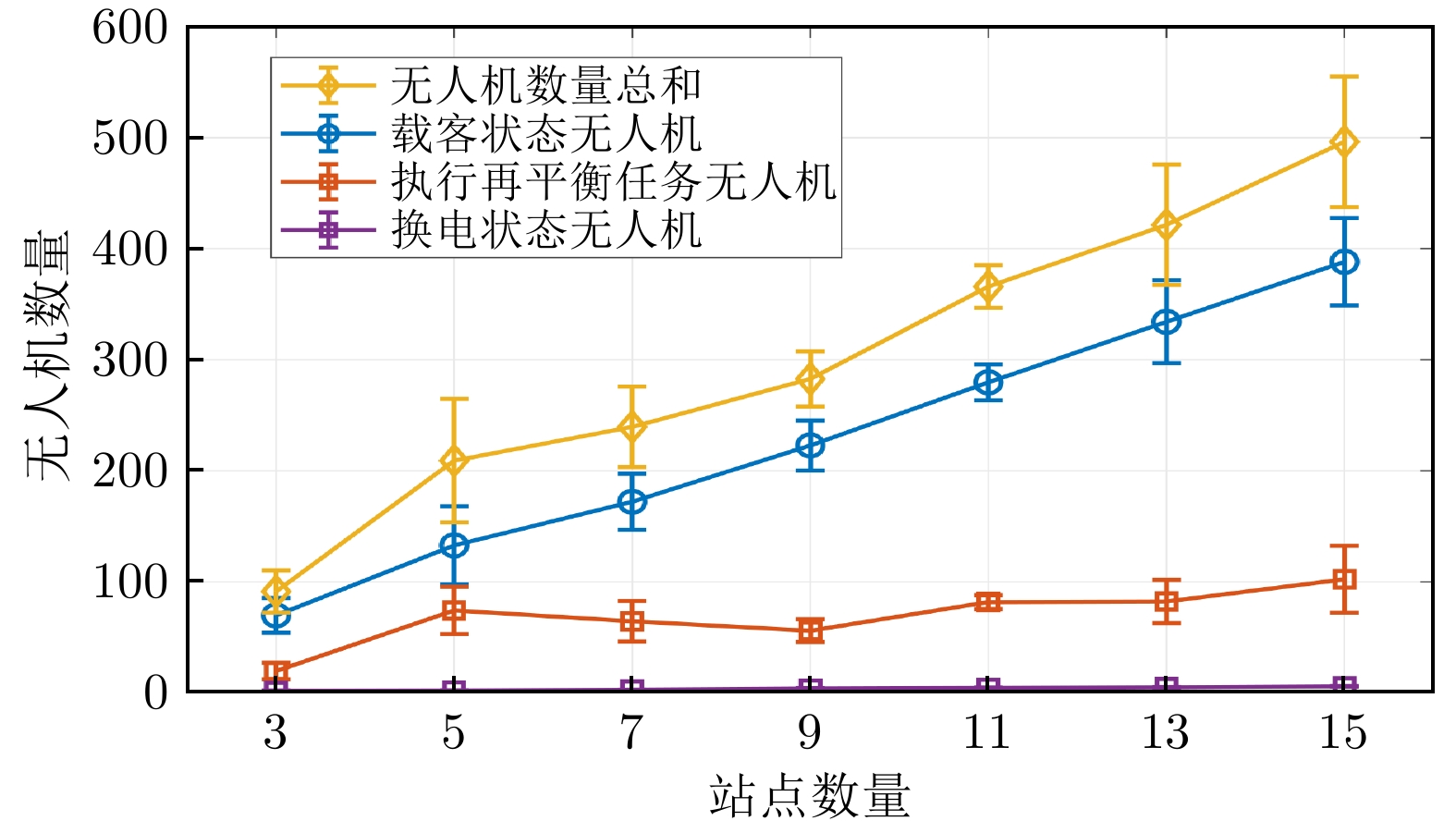 针对城市空中交通系统,提出一种优化方法以同时确定满足乘客需求的最小系统规模和最佳系统再平衡策略.研究构建了流体模型与多服务器M/M/s排队模型的联合框架,描述乘客、飞行器与电池在站点间迁移、换电及充电过程.在该模型框架下对飞行器和电池数量的适定性进行了证明,并给出了系统供需均衡时的必要条件.在此基础上,通过线性规划求解系统供需均衡下的再平衡分配率与最小机队规模,并计算最优充电站位置、电池数量及电池运输车数量.数值仿真分析了影响系统规模的因素,实例验证证明了所提再平衡方法的有效性.