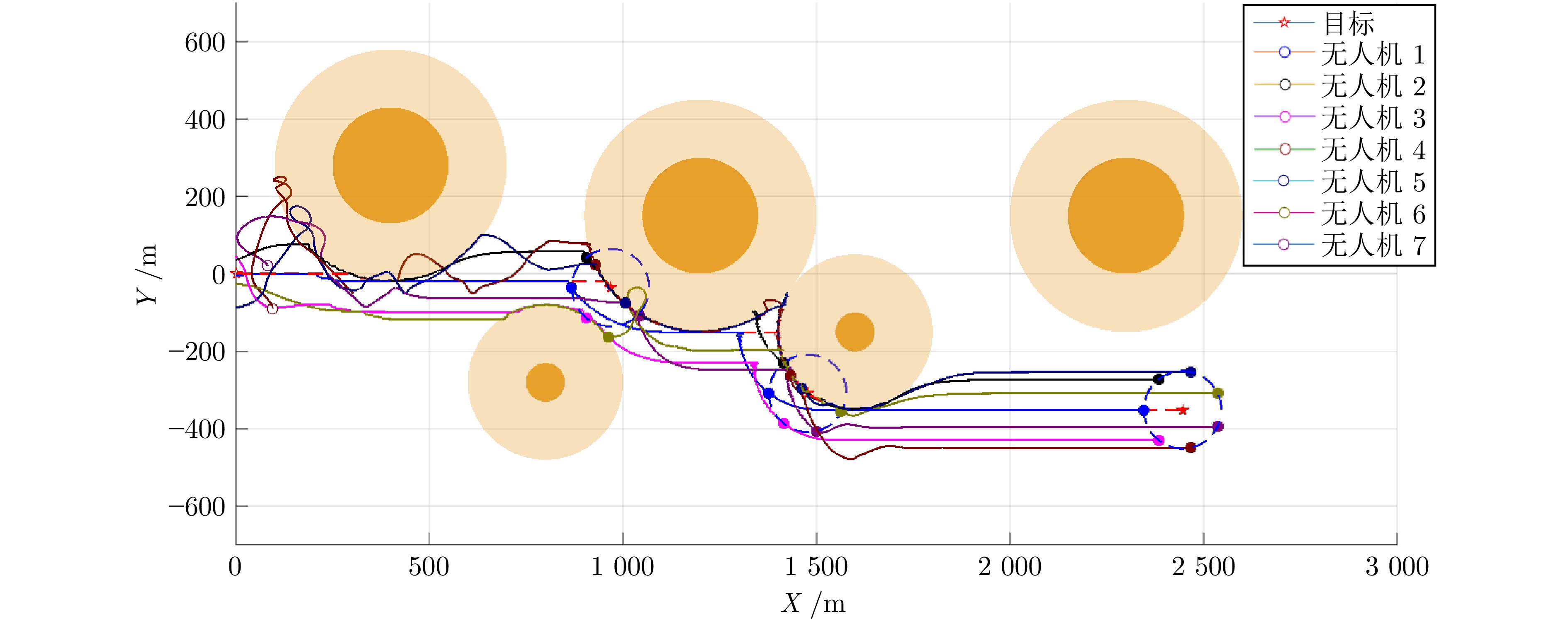 面向感知、通信受限且存在环境障碍的移动目标合围控制, 提出一种基于社会化协同的控制策略. 首先, 借鉴生物集群社会化行为, 构建协同响应模型与层级交互机制; 在拓扑切换与丢包条件下, 显式建模受限信息流, 以驱动集群实现目标合围. 其次, 提出强引导式任务-避碰并行协同控制, 在优先保障飞行安全的前提下实现鲁棒合围控制. 再次, 设计一致性目标状态观测器, 对目标位置与速度进行稳健估计. 最后, 仿真结果表明, 所提方法在障碍环境以及感知、通信受限条件下能够实现稳定合围, 并表现出较好的鲁棒性.