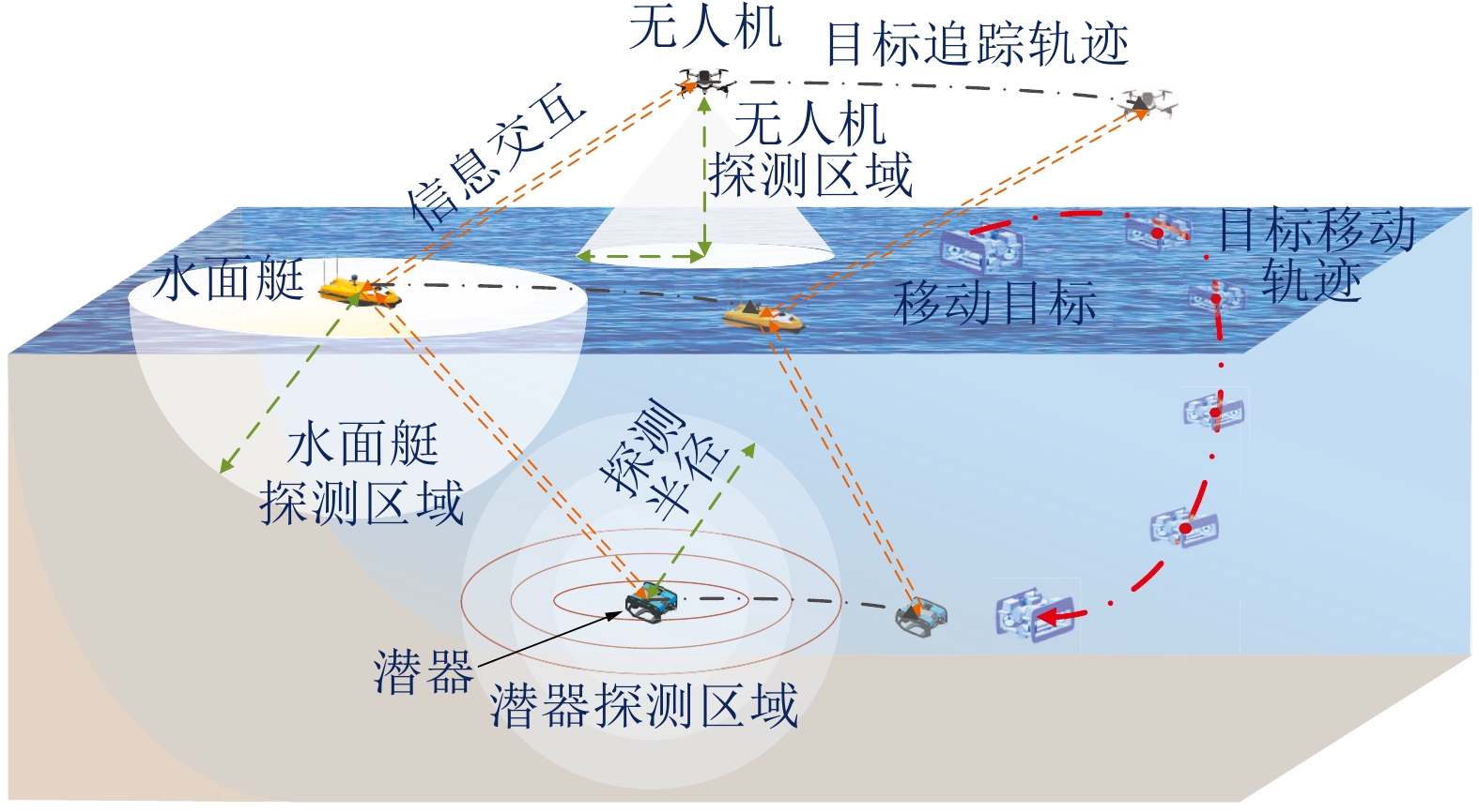 随着海洋开发不断推进, 水下目标追踪作为无人集群实现对作业目标持续接近的基础性技术, 在海上搜救、海洋监测、海底资源勘探等关键应用中发挥着重要作用. 同时, 海上跨域集群通过无人机、无人船与无人潜器等异构平台间的信息交互与自主协同, 能够在复杂海洋环境中实现对水下目标的高效探测与持续追踪, 相比单一水下域集群, 其在感知与作业能力的提升等方面具有巨大的潜力. 然而, 当前水下协同追踪技术仍存在感知测量能力不足、跨域协同机制不完善和环境适应性难以兼顾等挑战. 为此, 本文首先针对水下目标追踪的发展趋势进行分析; 同时, 面向追踪过程中定位、跟踪、通信与规划四个基础模块, 总结研究难点和挑战, 并梳理国内外研究进展; 最后, 针对联合设计等新颖的研究理念和前沿需求进行探讨, 以期为海上跨域集群水下目标追踪技术的发展提供参考.