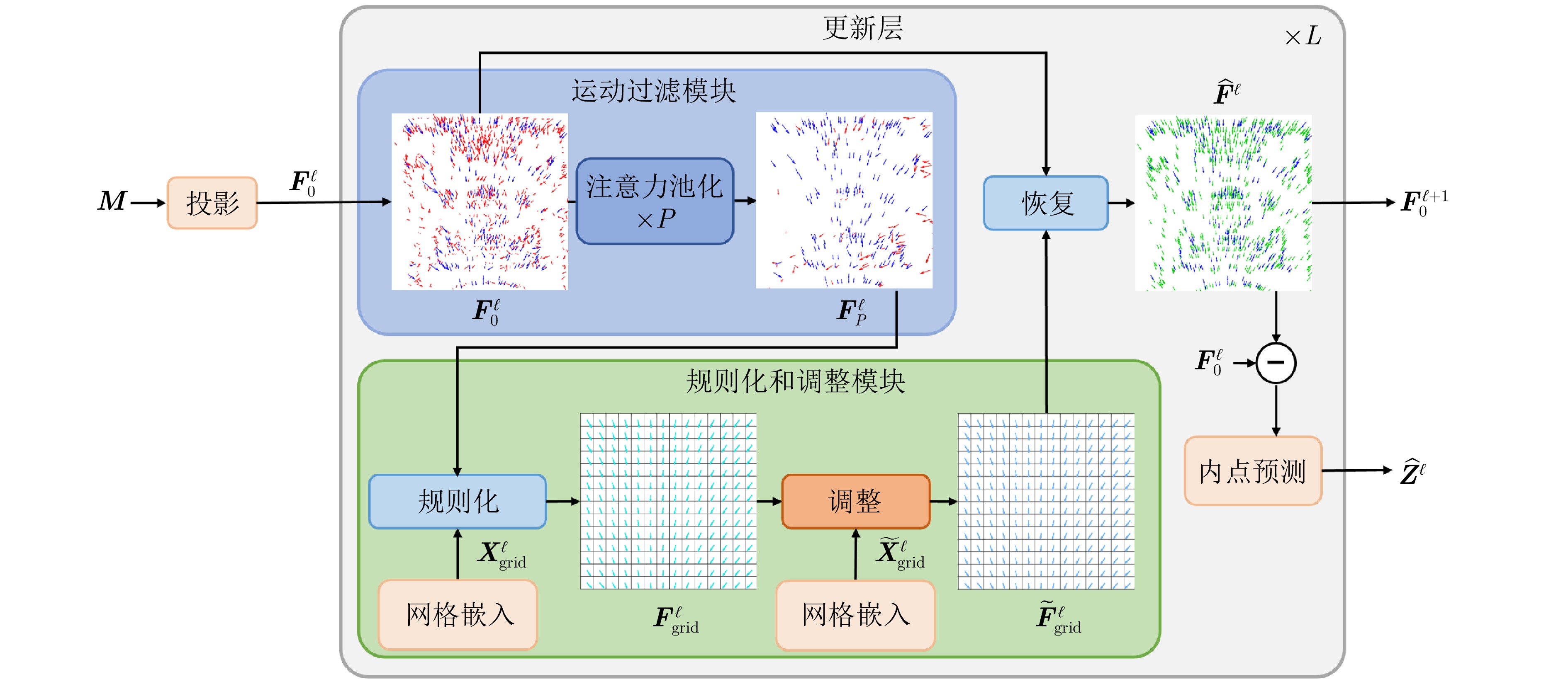 由现有的特征提取器建立的图像特征点匹配集合通常包含大量离群点, 这严重影响特征匹配的有效性和依赖匹配结果的下游任务的性能. 最近提出的几种离群点去除方法通过估计运动场来利用匹配对的运动一致性, 并使用卷积神经网络(CNN)来减少离群点造成的污染, 以捕获上下文. 然而, CNN在捕捉全局上下文方面存在固有缺陷, 其感受野的固定性与局部性导致模型难以自适应地整合远距离信息, 从而制约相关方法的性能. 与这些使用卷积神经网络直接估计运动场的方法不同, 本文尝试在不使用CNN的情况下估计高质量的运动场. 因此, 提出基于运动过滤和调整的网络, 以减轻在捕捉上下文时离群点的影响. 具体而言, 首先, 设计一个运动过滤模块, 以迭代地去除离群点并捕获上下文. 然后, 设计一个规则化和调整模块, 该模块先估计初始运动场, 接着通过利用额外的位置信息对其进行调整, 使其更加准确. 在离群点去除和相对姿态估计任务中, 利用室内和室外数据集评估所提出方法的性能. 实验结果表明, 与现有多种方法相比, 所提方法展现出更优的性能.