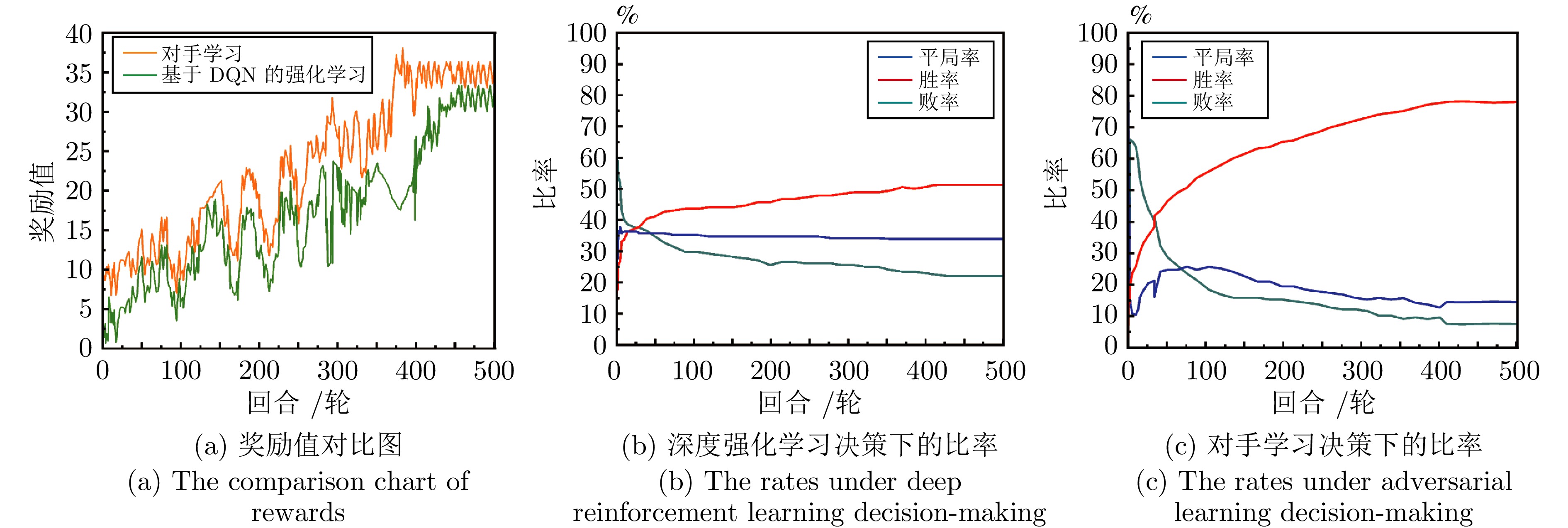 随着机载传感器和中远距空空导弹技术的快速发展, 超视距空战已经成为现代空战的主流形式. 在这种复杂多变的作战环境中, 开发能够实时掌握战场态势并制定合理机动决策的智能化技术, 已成为军事技术研究领域的热点问题. 首先, 构建一个涵盖飞机六自由度动力学模型、导弹制导系统模型和雷达传感器系统的高保真仿真环境; 接着, 融合模仿学习和自博弈方法, 提出基于对手学习的空战决策框架, 以解决深度强化学习在空战中适应性和泛化性差的缺点, 提升智能体在复杂多变战场环境中快速适应和策略优化的能力; 最后, 构建10种具有显著战术差异性的专家系统, 在高保真空战仿真平台中与智能体进行博弈对抗. 结果表明, 在收敛速度和胜率等关键指标上, 所提出的空战决策框架优于传统深度强化学习决策策略, 有效性和泛化性强, 可为复杂超视距空战态势下快速生成可靠策略提供技术支持.