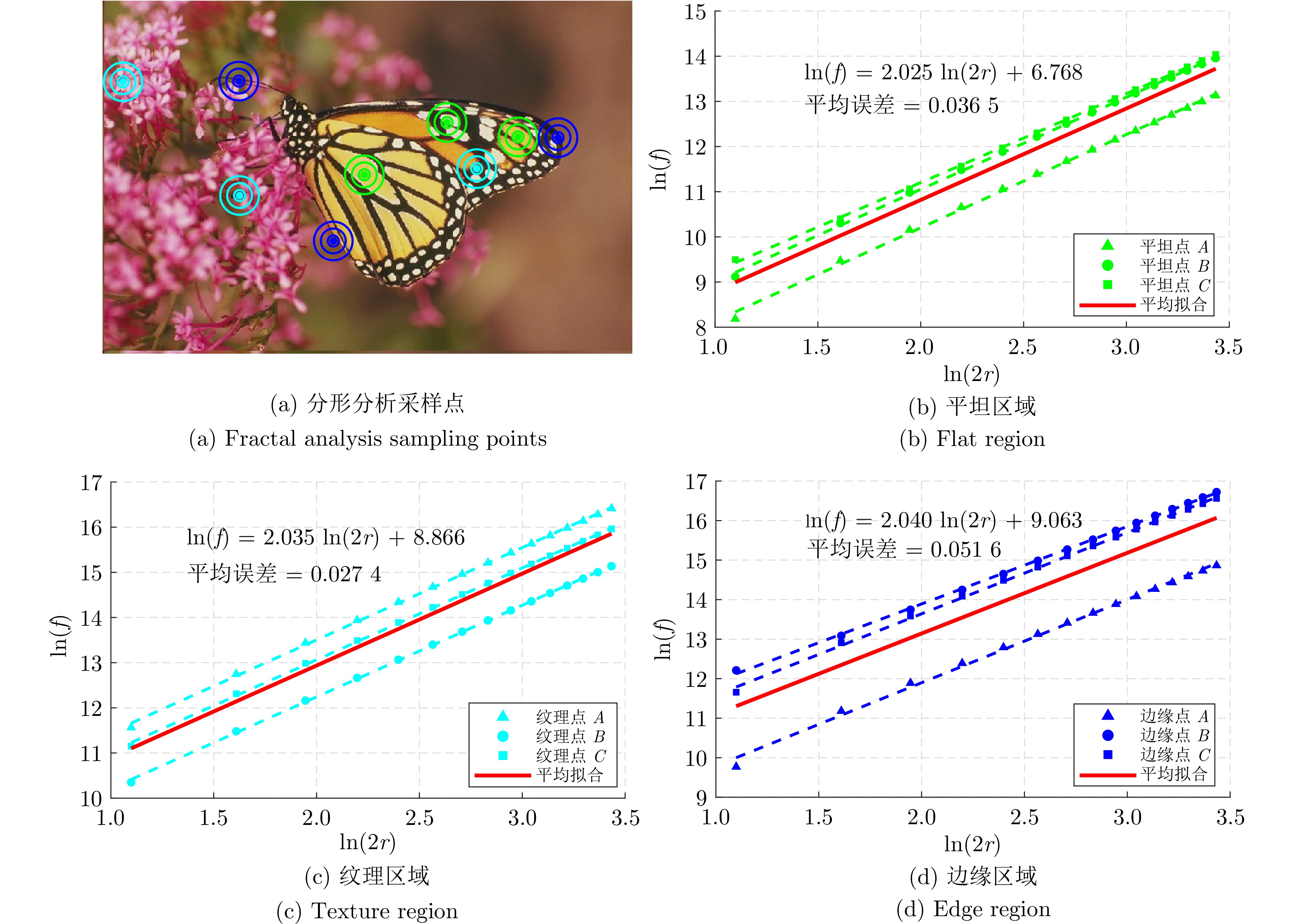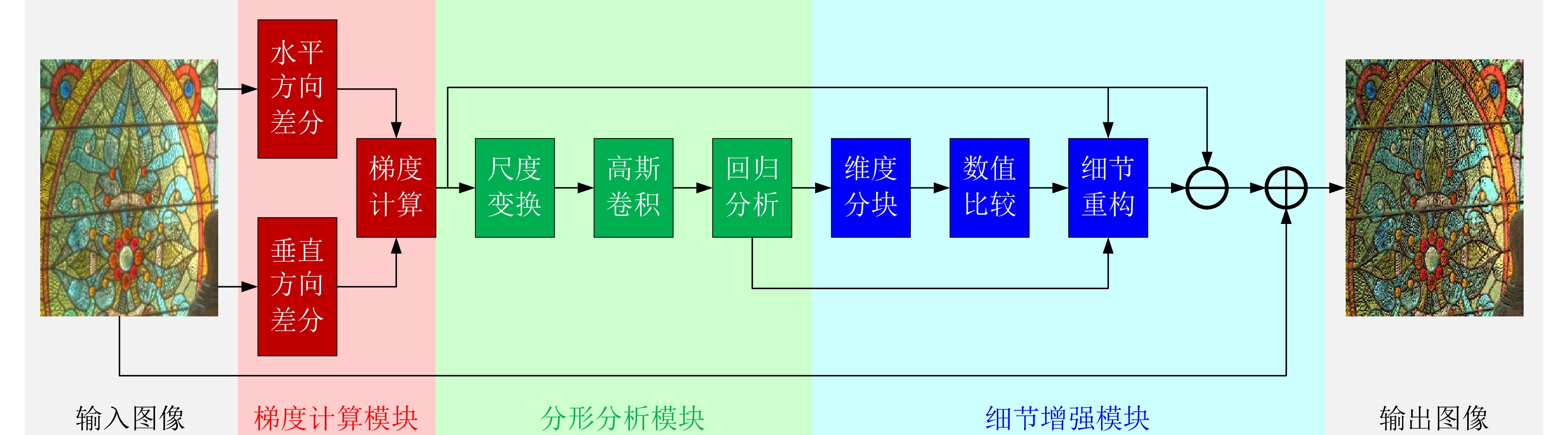 随着人们对图像画质要求的不断提高, 各类图像细节增强技术不断涌现. 然而, 基于局部滤波器速度较快, 但其细节增强效果往往有限; 全局滤波器效果突出, 但计算开销较大; 深度学习方法高度依赖人工标注数据, 且其缺乏可解释性; 基于残差学习的策略则容易陷入局部最优, 难以充分挖掘潜在的全局最优特征. 针对上述挑战, 提出一种基于局部分形维数最大化的图像细节增强算法. 研究发现, 图像的分形维数在一定程度上能够有效刻画图像纹理结构, 其空间分布呈现出一定规律: 边缘区域通常具有较高的分形维数, 纹理区域次之, 平坦区域则最低. 基于上述特性, 构建图像纹理特征与分形维数之间的映射关系, 并进一步探讨分形维数与图像细节层之间的内在关联机制. 该方法在保持整体结构一致性的前提下, 通过提升局部分形维数, 实现图像细节的有效增强, 进而为图像增强提供一种具有理论依据的新思路. 大量实验结果表明, 该方法在主观视觉感受和客观评价指标上具有竞争力的表现. 如在BSDS200数据集上进行四倍增强因子的测试中, 所提方法在峰值信噪比和结构相似度指标上相较于当前流行方法QWLS分别提升5.20 dB和