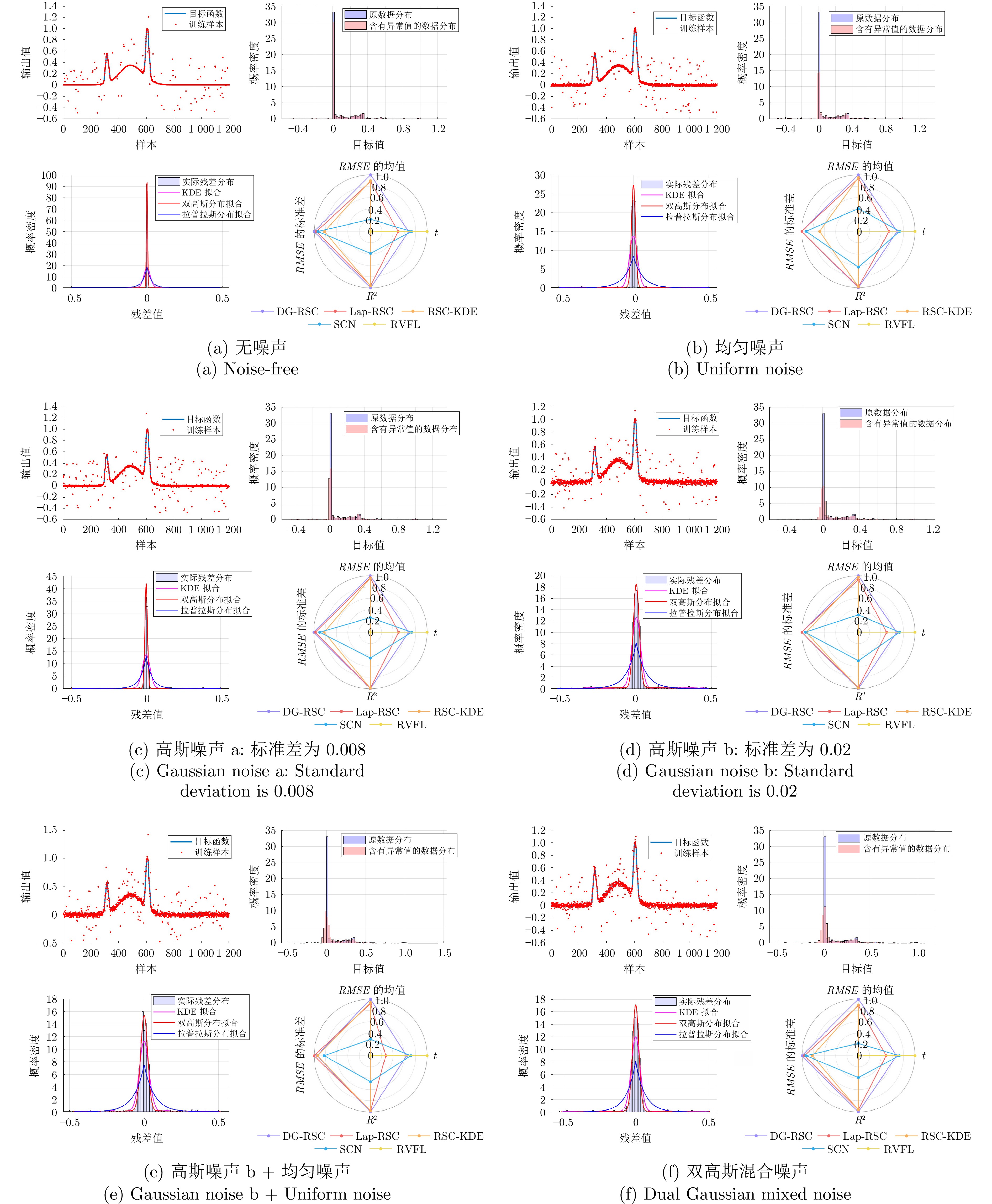 工业过程数据常常受到混合噪声干扰, 传统基于单一重尾分布的鲁棒建模方法在处理混合噪声问题时, 在准确性与可解释性方面均存在一定局限. 基于此, 提出一种混合双高斯分布的可解释鲁棒自适应建模方法. 该方法首先采用随机配置算法构建基础的随机配置网络学习模型, 确定模型的隐含层节点数、输入权重和偏置; 其次为保证模型对混合噪声的鲁棒性, 构建双高斯分布(一大一小方差)加权组合而成的噪声表征模型; 随后利用期望最大化算法自适应迭代学习随机配置网络输出权值和混合高斯模型噪声参数, 最终形成基于双高斯分布混合鲁棒建模方法. 该方法具有以下优势: 噪声模型能够通过参数自适应学习逼近实际混合噪声特性, 其中大方差高斯分量负责对异常噪声进行粗调, 小方差高斯分量则用于精细拟合主体噪声, 从而增强模型的可解释性; 在网络模型输出权值估计过程中, 通过为每个输出数据点自适应分配惩罚权重, 保障模型的鲁棒性能. 为验证所提方法的有效性, 分别在函数仿真、基准数据集和工业实例上设计多组对比实验, 结果均表明所提方法具备良好的可靠性与实用性.