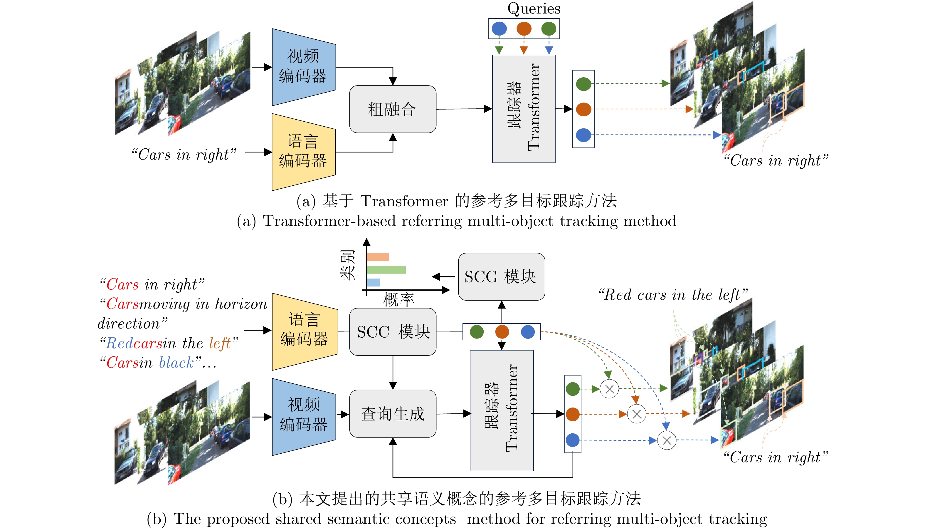 参考目标跟踪(Referring multi-object tracking, RMOT)是一项利用语言与视觉模态数据进行目标定位与跟踪的任务, 旨在根据语言提示在视频帧中精准识别并持续跟踪指定目标. 尽管现有RMOT方法在该领域取得了一定进展, 但针对语言表述概念粒度的建模仍较为有限, 导致模型在处理复杂语言描述时存在语义解析不足的问题. 为此, 提出基于语义概念关联的参考多目标跟踪方法SCATrack), 通过引入共享语义概念(Sharing semantic concept, SSC)和语义概念辅助生成(Semantic concept generation, SCG)模块, 以提升模型对语言表述的深层理解能力, 从而增强跟踪任务的持续性与鲁棒性. 具体而言, SSC模块对语言表述进行语义概念划分, 使模型能够有效区分相同语义的不同表达方式, 以及不同语义间的相似表达方式, 从而提升多粒度输入条件下的目标辨别能力. SCG模块则采用特征遮蔽与生成机制, 引导模型学习多粒度语言概念的表征信息, 增强其对复杂语言描述的鲁棒性和辨别能力. 在两个广泛使用的基准数据集上的实验结果表明, 所提出的SCATrack显著提升RMOT任务的跟踪性能, 验证了方法的有效性与优越性.