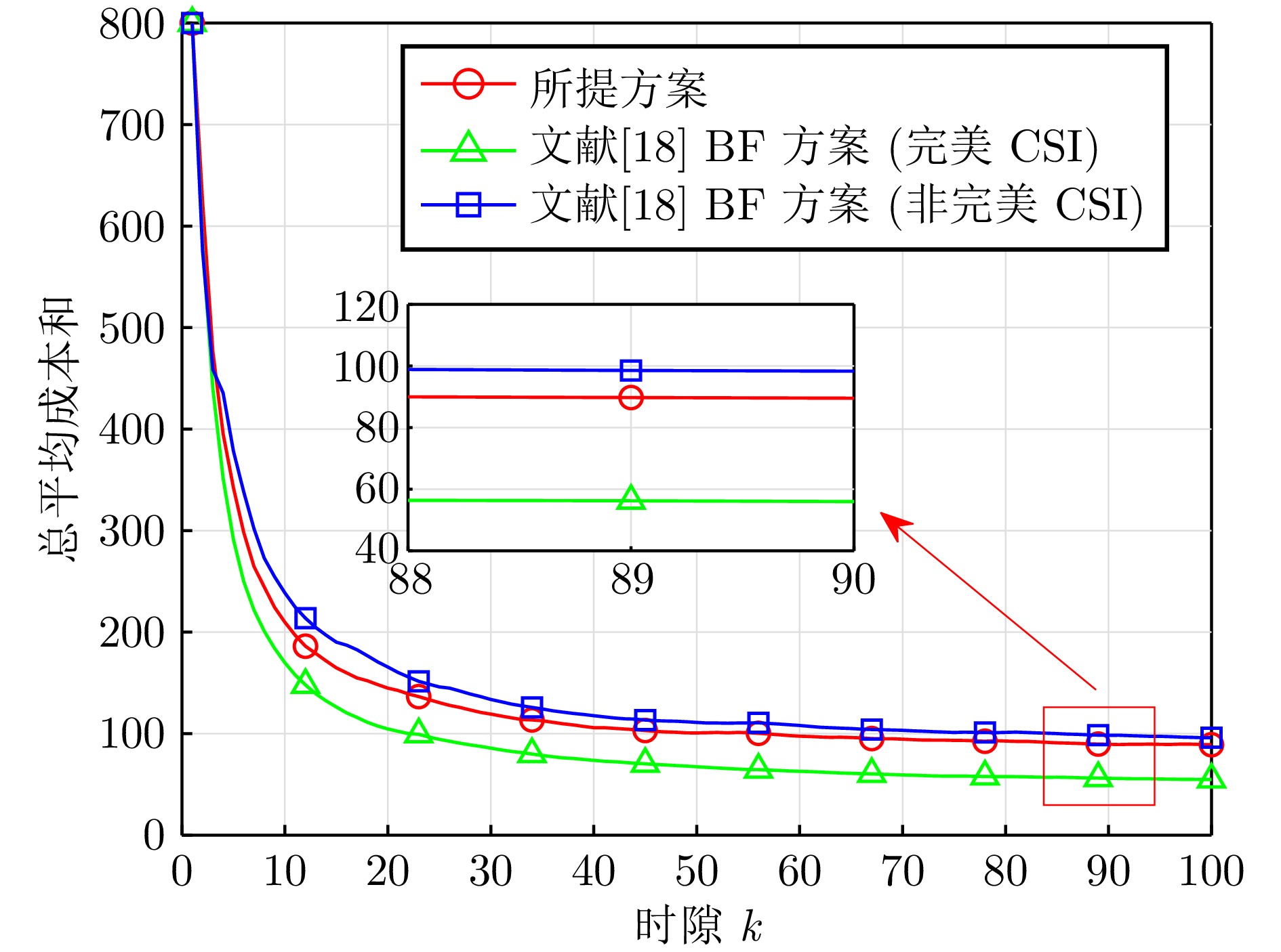 在无线资源受限的情况下, 采用多波束技术来实现多个环路的同时控制是无线控制系统领域的技术难题. 在仅已知非完美信道状态信息的条件下, 提出一种联合鲁棒波束成形与设备调度算法, 保证控制稳定性的同时降低系统总成本. 首先, 以系统控制成本和通信成本的加权和最小化为目标函数, 以满足控制稳定性和发射功率限制为约束条件, 建立一个多个环路同时控制场景下的优化问题. 其次, 通过二次李雅普诺夫函数将稳定性约束转换为传输成功概率约束. 由于该非凸问题难以求解, 进一步提出控制成本与通信成本联合优化的双目标方案, 并基于怀特指数方法提出控制成本最小化的设备调度算法, 同时采用伯恩斯坦不等式和半正定规划等数学工具, 设计满足控制稳定性的通信成本最小化鲁棒波束成形算法. 最后, 计算机仿真表明, 所提方案相比于典型传输方案能够降低10% 至 41%的总成本, 实现通信与控制成本之间的良好折中.