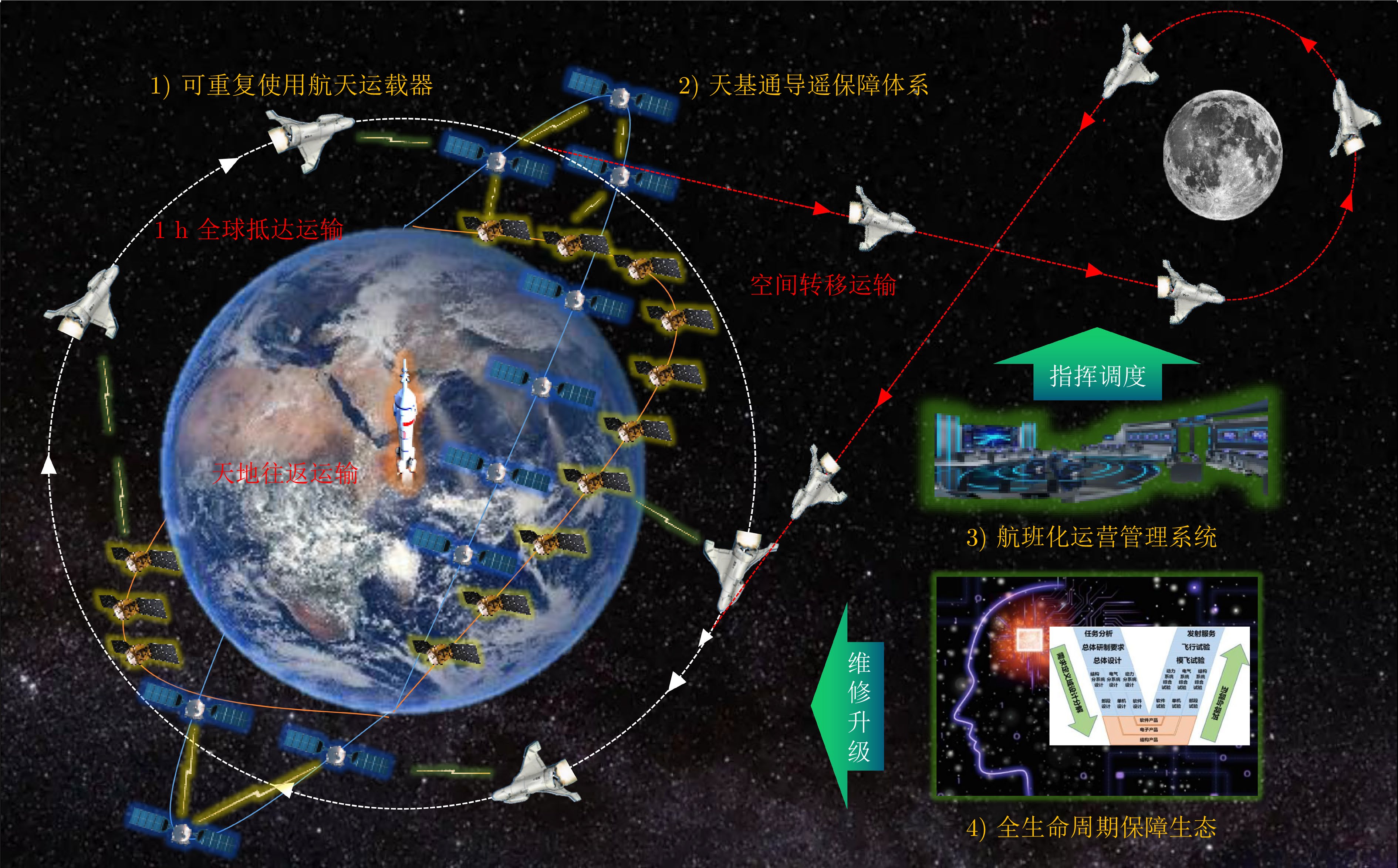 发展航班化航天运输系统已成为提升航天运输能力的重要途径, 智能技术将为航班化航天运输系统建设发挥重要赋能作用. 通过梳理航天运输系统的发展现状与趋势, 分析智能化时代下的航班化航天运输形态, 形成智能赋能航天运载器、智能赋能运营管理体系、智能赋能研发保障生态三方面智能应用需求, 结合国内外研究进展提出对航班化航天运输系统智能赋能路径方法的发展思考, 最后总结并展望智能赋能航班化航天运输系统的发展方向.