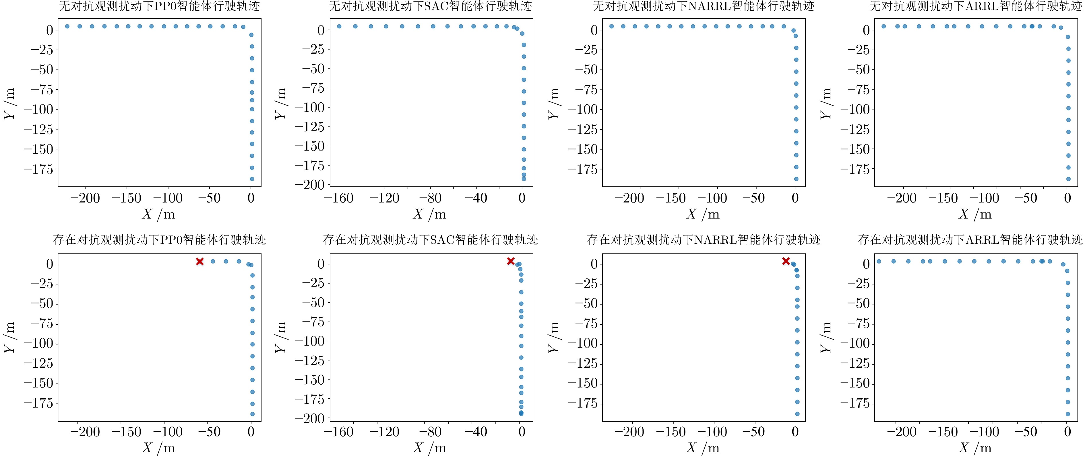 虽然强化学习近年来取得显著成功, 但策略鲁棒性仍然是其在安全攸关的自动驾驶领域部署的关键瓶颈之一. 一个根本性挑战在于, 许多现实世界中的自动驾驶任务面临难以预测的环境变化和不可避免的感知噪声, 这些不确定性因素可能导致系统执行次优的决策与控制, 甚至引发灾难性后果. 针对上述多源不确定性问题, 提出一种对抗鲁棒强化学习方法, 实现可信端到端控制策略优化. 首先, 构建一个可在线学习的对手模型, 用于同时逼近最坏情况下环境动态扰动与状态观测扰动. 其次, 基于零和博弈建模自动驾驶智能体与环境动态扰动之间的对抗性. 再次, 针对所模拟的多源不确定性, 提出鲁棒约束演员-评论家算法, 在连续动作空间下实现策略累计奖赏最大化的同时, 有效约束环境动态扰动与状态观测扰动对所学端到端控制策略的影响. 最后, 所提出的方案在不同的场景、交通流及扰动条件下进行评估, 并与三种代表性的方法进行对比分析, 验证了该方法在复杂工况和对抗环境中的有效性与鲁棒性.