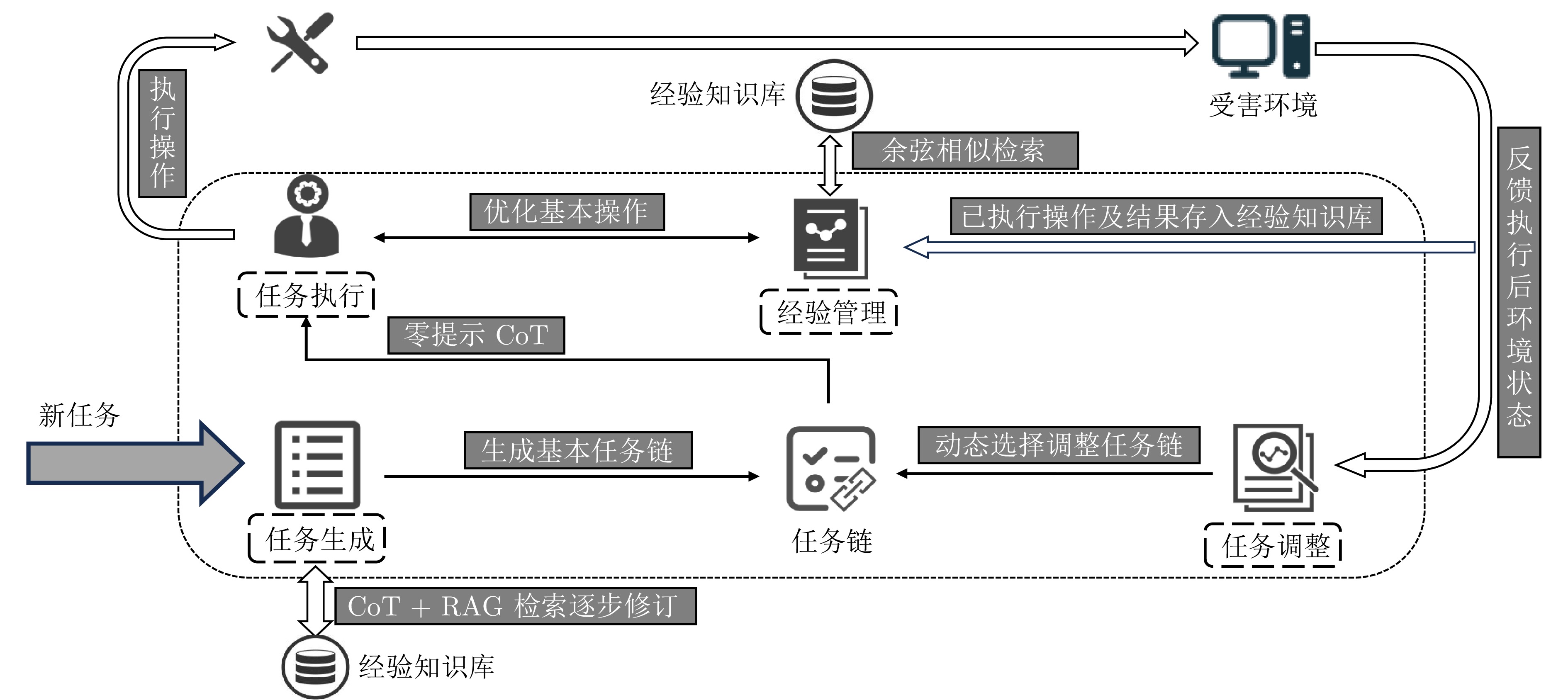 渗透测试作为一种主动的安全评估手段, 在保障网络安全中发挥着至关重要的作用. 传统的渗透测试通常高度依赖专家经验和人工操作, 测试过程复杂且耗时. 基于大语言模型的渗透测试智能体能够在测试环境中生成和调整策略, 相较于传统的方式, 具备更强的创新性和适应性. 在大语言模型辅助渗透测试的过程中, 存在因测试路径偏移、大语言模型"幻觉"问题而导致渗透测试任务的中断或失败的情况. 基于此, 提出一个基于大语言模型的多智能体渗透测试框架LangPentest, 旨在通过自然语言处理技术提高攻击策略的自动生成和执行能力, 框架采用了大语言模型驱动的程序框架(LangChain)和检索增强生成技术, 提高LangPentest性能并降低大语言模型在应用渗透测试方面的“幻觉”问题. 框架由任务生成、任务执行、经验管理和任务调节四部分模块组成, 对基准目标测试后, 基于Claude 3.5 Sonnet模型的框架任务成功率最高; 且与AutoGPT和PentestGPT相比, 本框架在任务成功率方面具有明显优势, 在任务完成和整体性能方面证明了LangPentest的可行性和有效性.