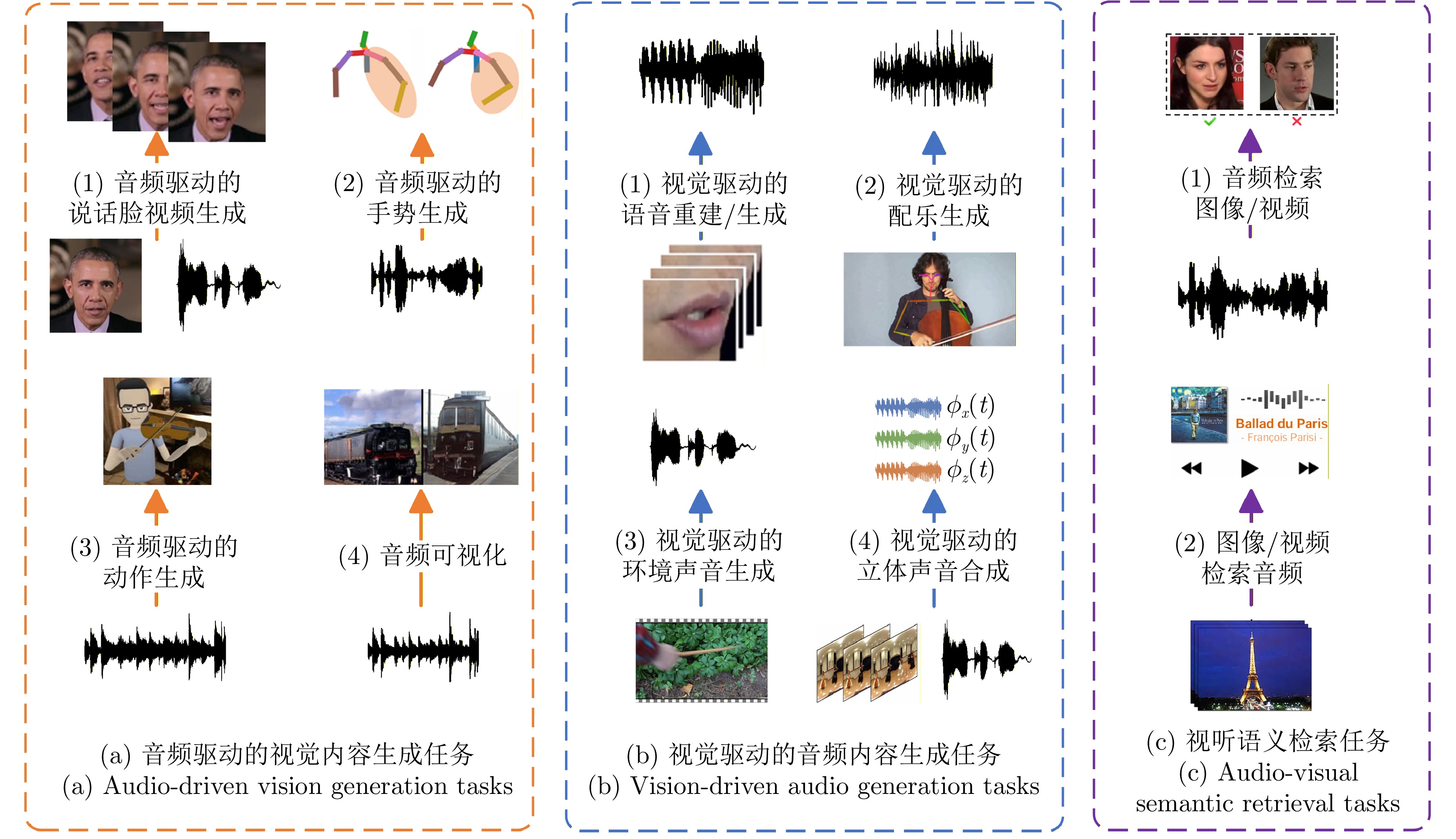 在人类信息获取过程中, 视听觉扮演着重要角色, 大脑通过整合视听信息, 形成统一、连贯且稳定的知觉体验. 视听多模态学习旨在模拟人类的视听多感官整合能力, 近年来受到研究者的广泛关注. 然而, 该领域在应用场景、任务目标和技术方法上呈现出显著的多样性, 目前尚且缺乏对视听多模态学习领域系统性回顾和分析的综合性中文综述. 基于人类的多感官整合机制在视听认知中的重要性以及不同视听多模态学习任务间的内在关联性, 提出一个统一框架, 将现有研究归纳为三类: 视听增强通过引入音频或视觉信息实现对初始单模态任务的增强效应; 跨模态交互旨在探索视听信息间的相互转换; 视听协作致力于探索视听信息的综合理解方法及其协同效应. 在此基础上, 对该领域中的最新研究进展进行系统性综述和总结. 此外, 深入剖析当前视听多模态学习研究所面临的五大核心共性问题和挑战---视听表征、对齐、转换、融合和共同学习; 并探讨大模型背景下视听多模态学习的发展现状.