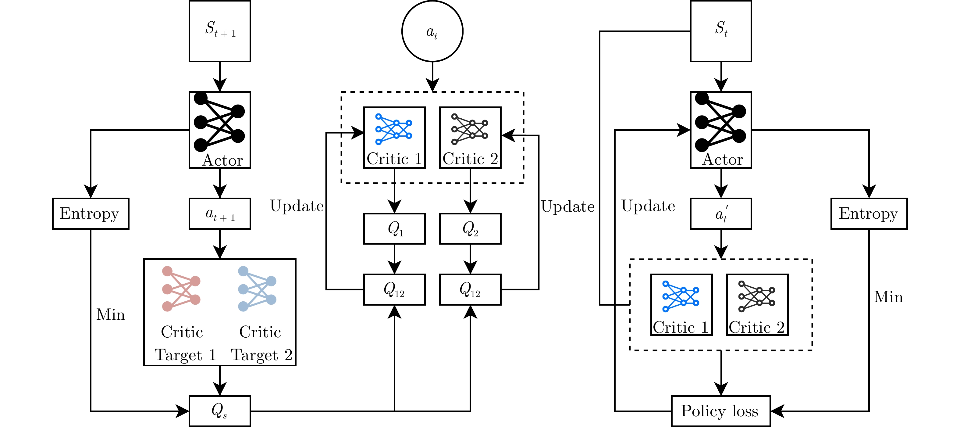 轨道追逃博弈中逃逸策略的高度未知性与行为多样性, 给追踪策略的泛化能力带来严峻挑战. 深度强化学习虽可提升追踪星的博弈效能, 但当逃逸策略偏离训练分布时, 策略网络易产生次优甚至失效的决策. 为此, 提出一种基于行为预测和策略融合的轨道博弈决策方法. 在训练阶段, 首先采用“预测制导 + 人工势场法”构建多样化逃逸策略集. 随后在传统演员−评论家训练框架的基础上, 通过引入预测网络构建预测器−演员−评论家算法, 针对每类逃逸策略分别训练以获得对应的追踪子策略. 其中预测网络用于估计逃逸星动作, 并通过预测结果与真实动作的相似性衡量子策略与未知逃逸策略的匹配度. 在执行阶段, 策略融合器以逃逸星历史动作与各追踪子策略的预测结果为输入, 动态计算匹配度并选择最优子策略进行博弈决策. 实验结果表明, 预测网络能有效评估追踪子策略对未知逃逸策略的适应性, 策略融合器可显著提升追踪星面对多样化逃逸策略的泛化能力与可靠性.