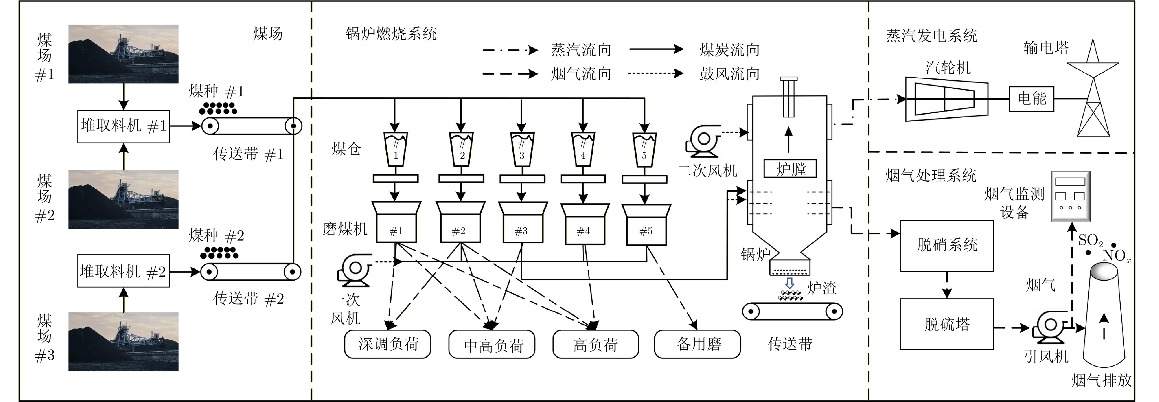 针对火电企业人工配烧方案制定效率低、成本高的问题, 本文首次系统性开展面向分段计划负荷的耦合配烧优化模型与硫分约束界调整研究. 首先, 为保证更快速与更精准地制定配烧方案, 通过磨煤机组的切换磨向量建立分段计划负荷与配烧优化模型之间的耦合关系, 实现以计算机优化模型为主的数字化配烧. 然后, 针对耦合配烧优化模型中的硫分约束值受燃煤硫转化、脱硫等多重不确定性影响的问题, 在反演计算硫分约束界的基础上, 基于改进随机配置网络建立硫分约束界前馈补偿模型. 接下来, 为保证前馈补偿模型的历史训练样本案例数据库的最优性, 通过监测机组的实时生产数据全周期迭代动态更新案例数据库, 进而提升前馈补偿模型的全周期预测精准性. 基于该模型开发的软件系统应用结果表明: 配烧方案制定时间从原来的40分钟/次缩短至5分钟/次以内; 在满足环保要求的前提下, 优化后配烧成本较人工经验方案平均降低21 CNY/t, 取得显著的效率与经济效益.