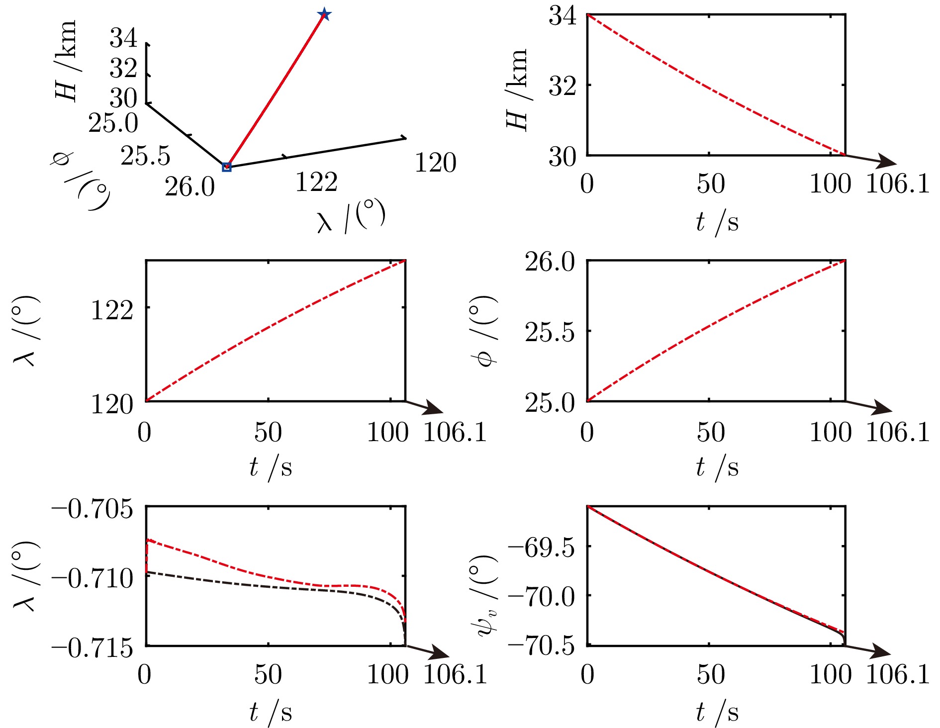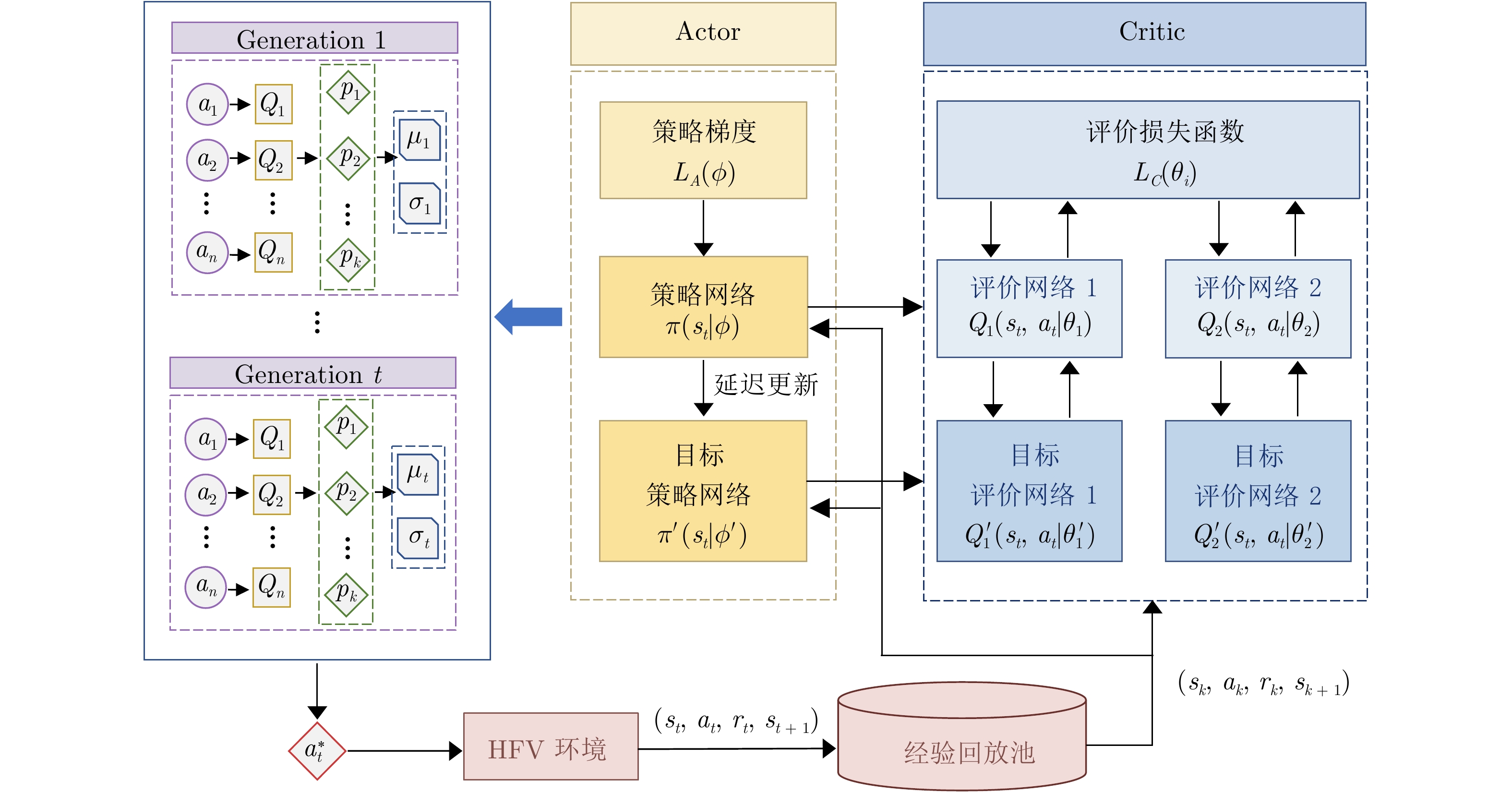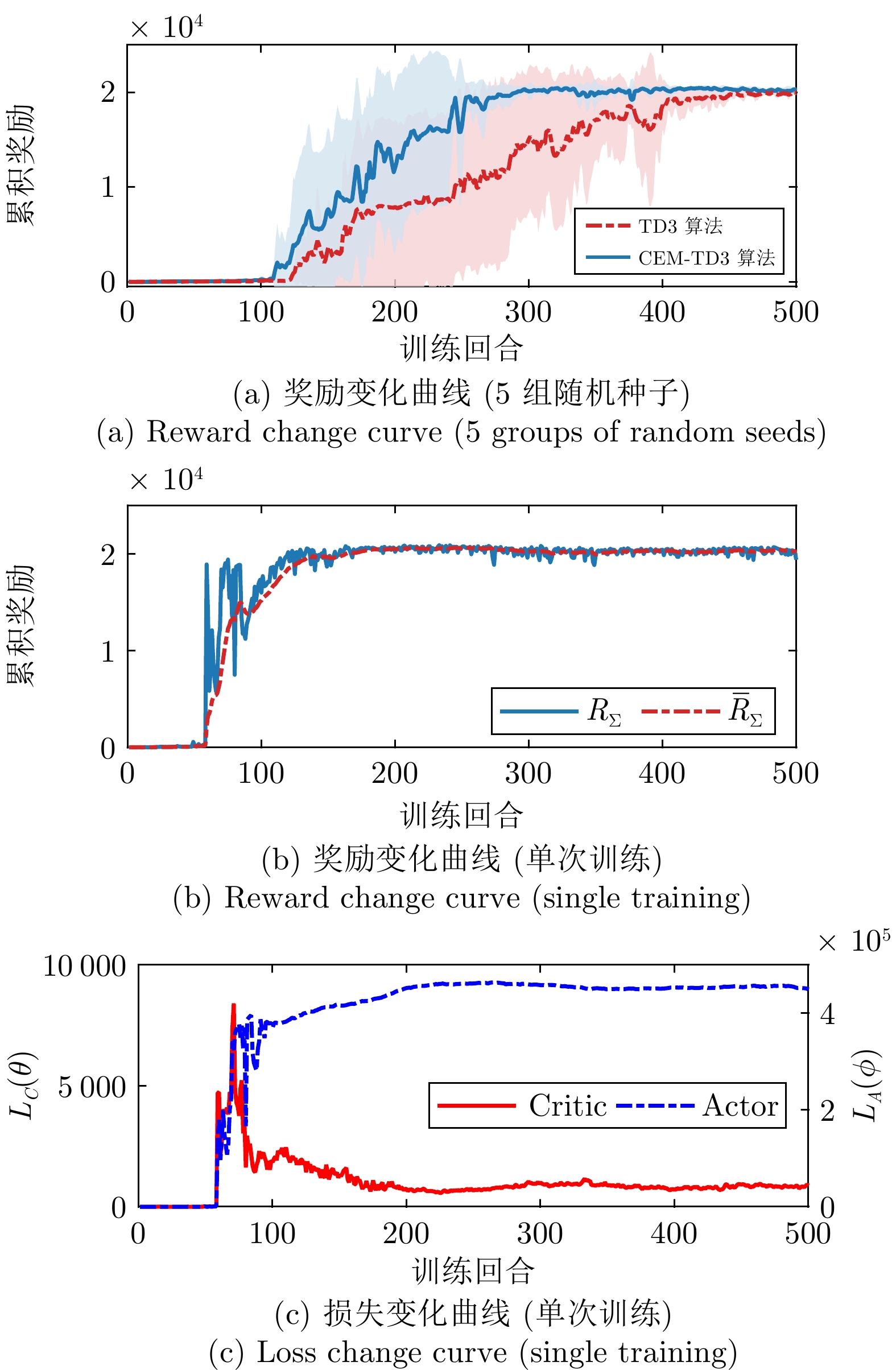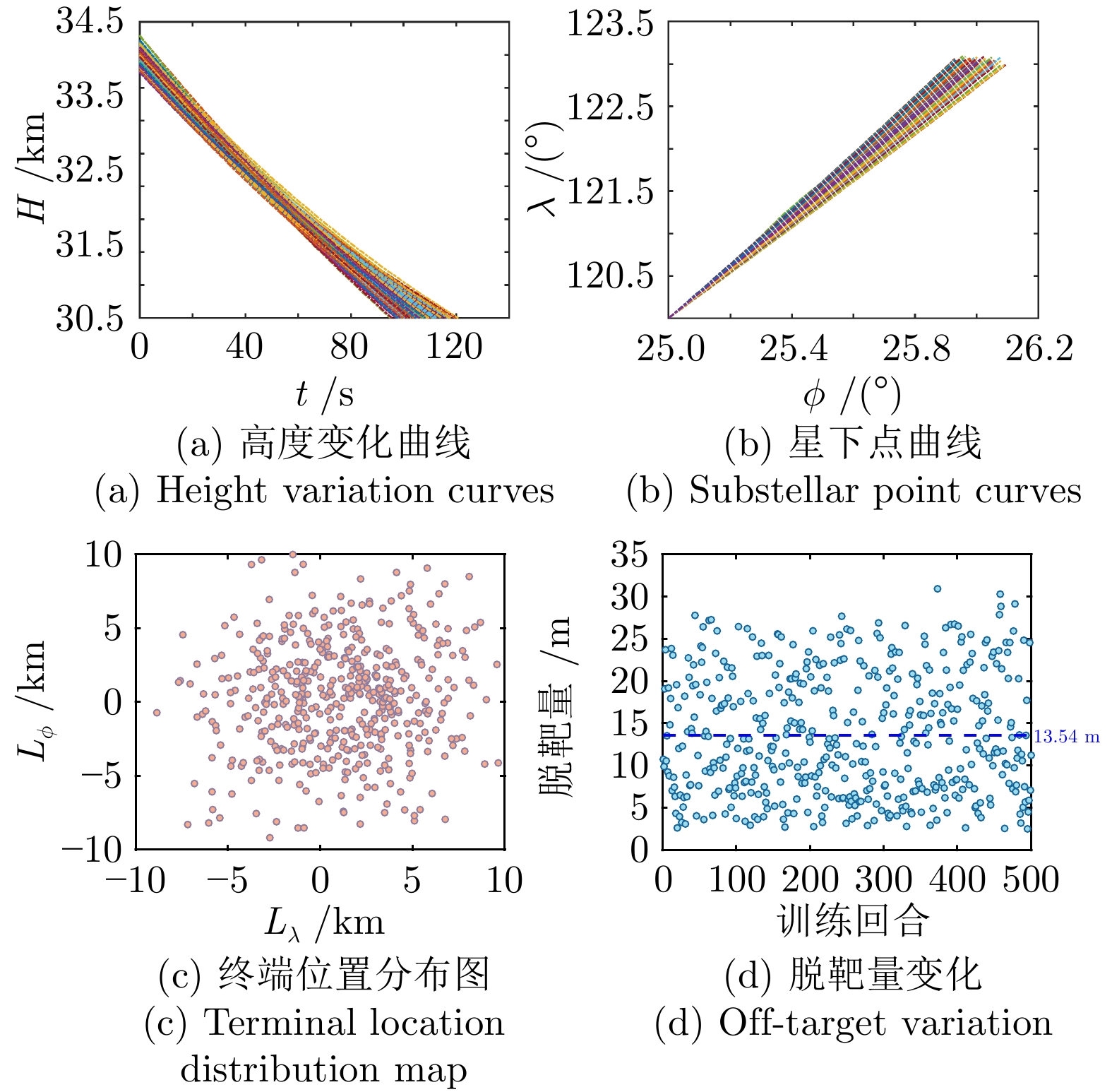 针对高超声速飞行器在外界干扰与模型不确定性影响下的制导控制难题, 提出一种融合双延迟深度确定性策略梯度与交叉熵方法 (CEM) 的进化强化学习框架. 首先, 构建高超声速飞行器的运动模型与制导控制一体化模型; 其次, 将复杂干扰环境下的多约束控制问题转化为强化学习决策优化过程, 依托深度强化学习的无模型数据驱动特性, 建立从状态观测到舵偏角指令的端到端映射机制. 同时, 引入基于CEM的动作空间采样机制, 通过Q 值最大化准则筛选精英候选动作集, 利用价值函数引导进化搜索方向, 有效克服传统强化学习探索低效、盲目性强的缺陷, 提升样本利用效率. 最后, 仿真结果表明所提算法能够适应初始高度偏差 ±300 m、速度偏差 ±200 m/s及气动参数 ±40%不确定性等变任务飞行条件, 且在终端控制精度与鲁棒性等核心指标上显著优于传统控制方法.