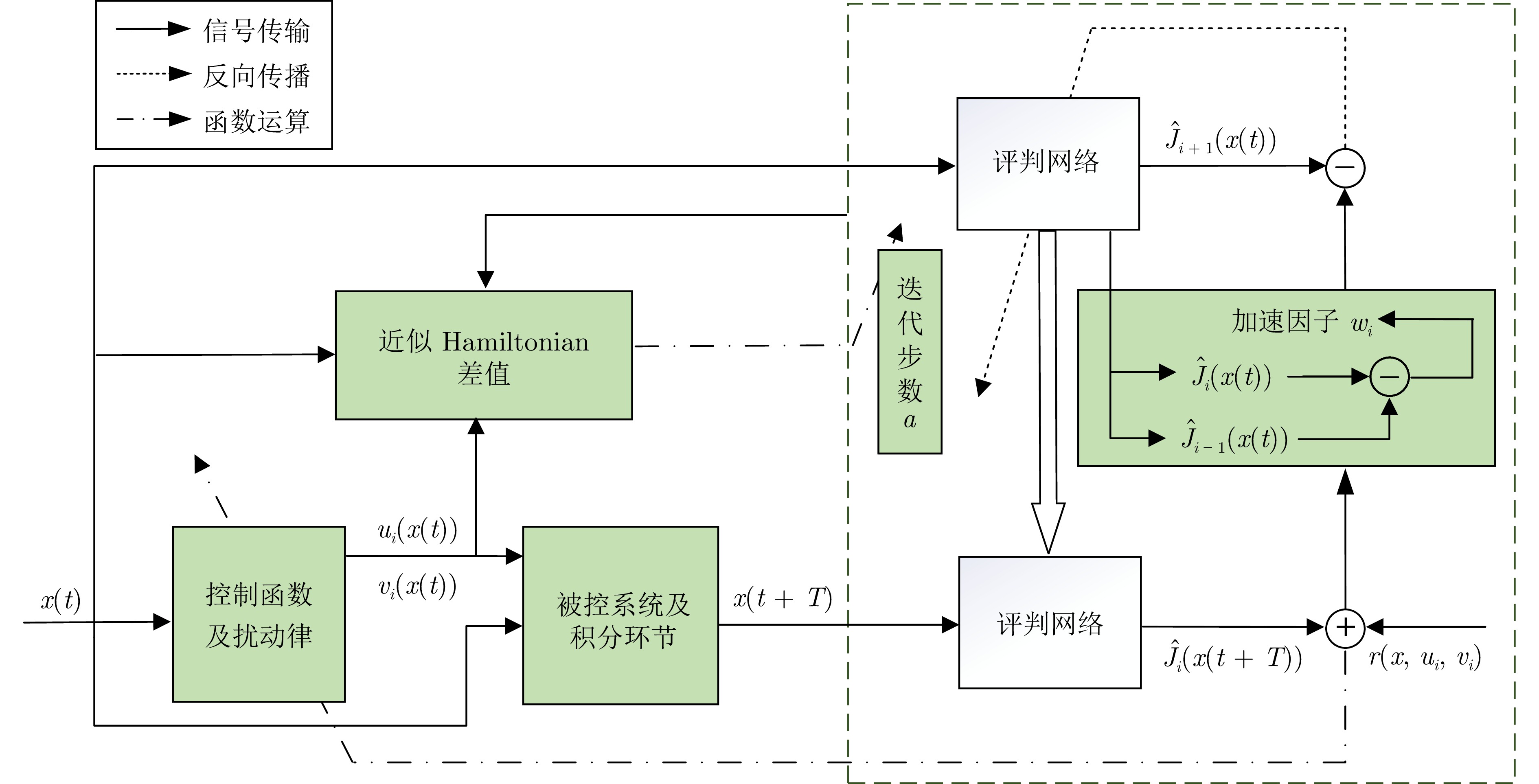 针对存在扰动的连续时间非线性系统, 设计一种结合混合迭代机制和自适应评判框架的鲁棒控制方法. 通过优化传统值迭代方法, 实现加速学习并放宽了预设条件的目标. 引入可调参数确保控制策略在迭代过程中的可容许性, 从而放松了加速因子的设置条件. 结合广义策略迭代的思想, 构建新型混合迭代机制, 从而获得更优的收敛性能. 最后, 利用两个仿真实例验证了所提方法的性能. 针对线性系统的仿真结果表明, 本文方法具有较高的收敛精度. 在导弹自动驾驶仪系统仿真中, 相对于值迭代方法, 本文方法不依赖初始可容许控制策略, 同时能使收敛速度提高约49%.