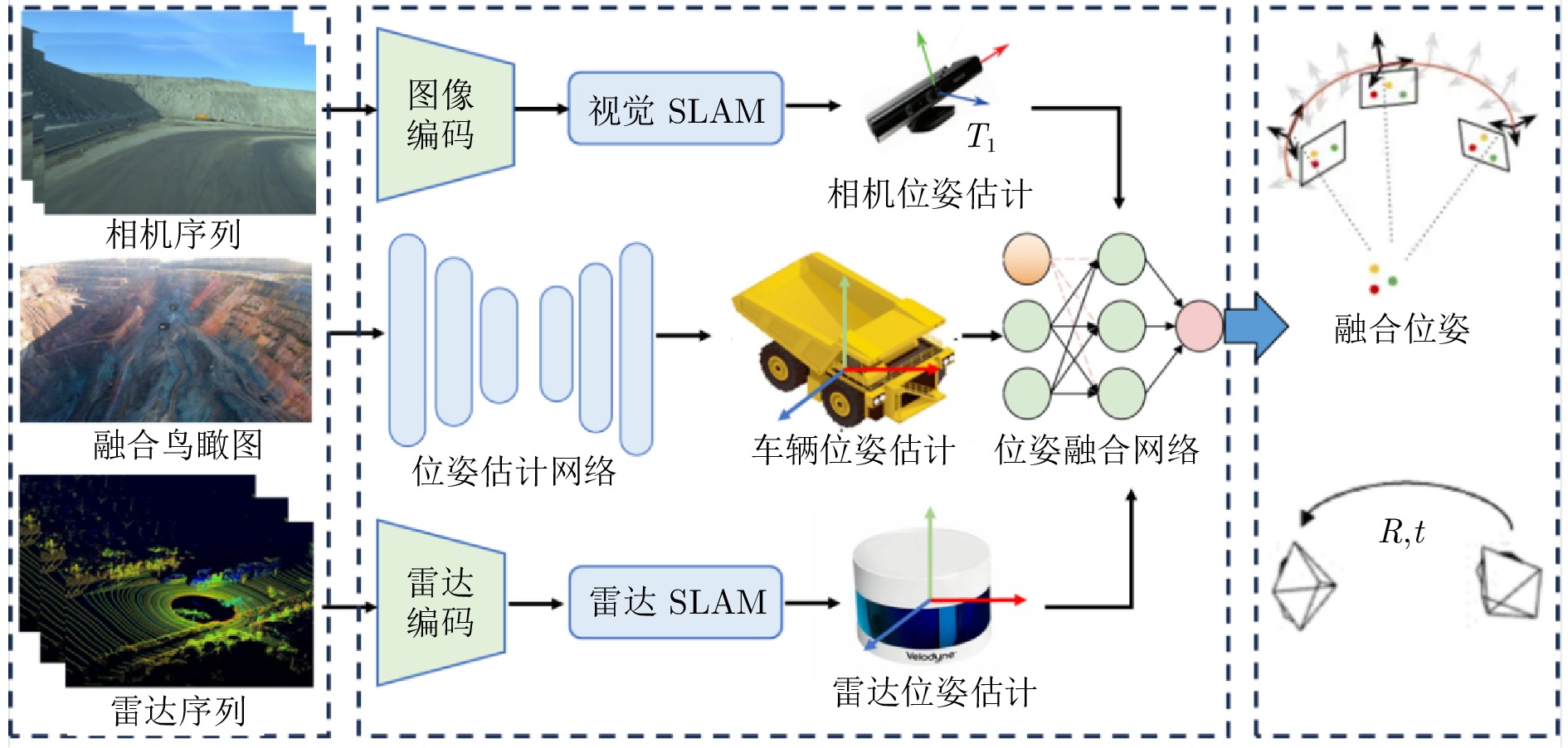 露天矿机器人化采运系统面临复杂特定场景数据不足、极端工况测试困难、现场试验与调试安全风险高、高动态变化环境的感知与建模复杂和全场景物理实验周期长等挑战, 亟需突破提效开采演化机理、高精度全域融合感知、高效率稳定协同控制、高可靠安全群体管控4大科学问题. 通过研究极端环境全域多模感知与变载稳健自适应控制、动态装卸区多机装载协同与多车高效卸载规划、采运系统自主学习建模与虚实融合平行仿真、高适用性工程应用方案, 提出露天矿立足机器人化采运“端边感知、平行控制”的智慧生产模式, 从感控、协同、调度、应用等多层次提出机器人化采运关键理论与技术. 通过技术创新和迭代优化, 实现我国露天矿机器人化采运系统技术自主创新和关键技术自主可控, 确保露天煤矿机器人化运输车的大批量安全高效作业运行, 形成我国露天煤矿迈向高水平智能化的“双十 (10项创新技术、10项机器人化采运标准)、双百 (100台车应用示范, 较有人系统的110%的综合运输运行效率)、双千 (