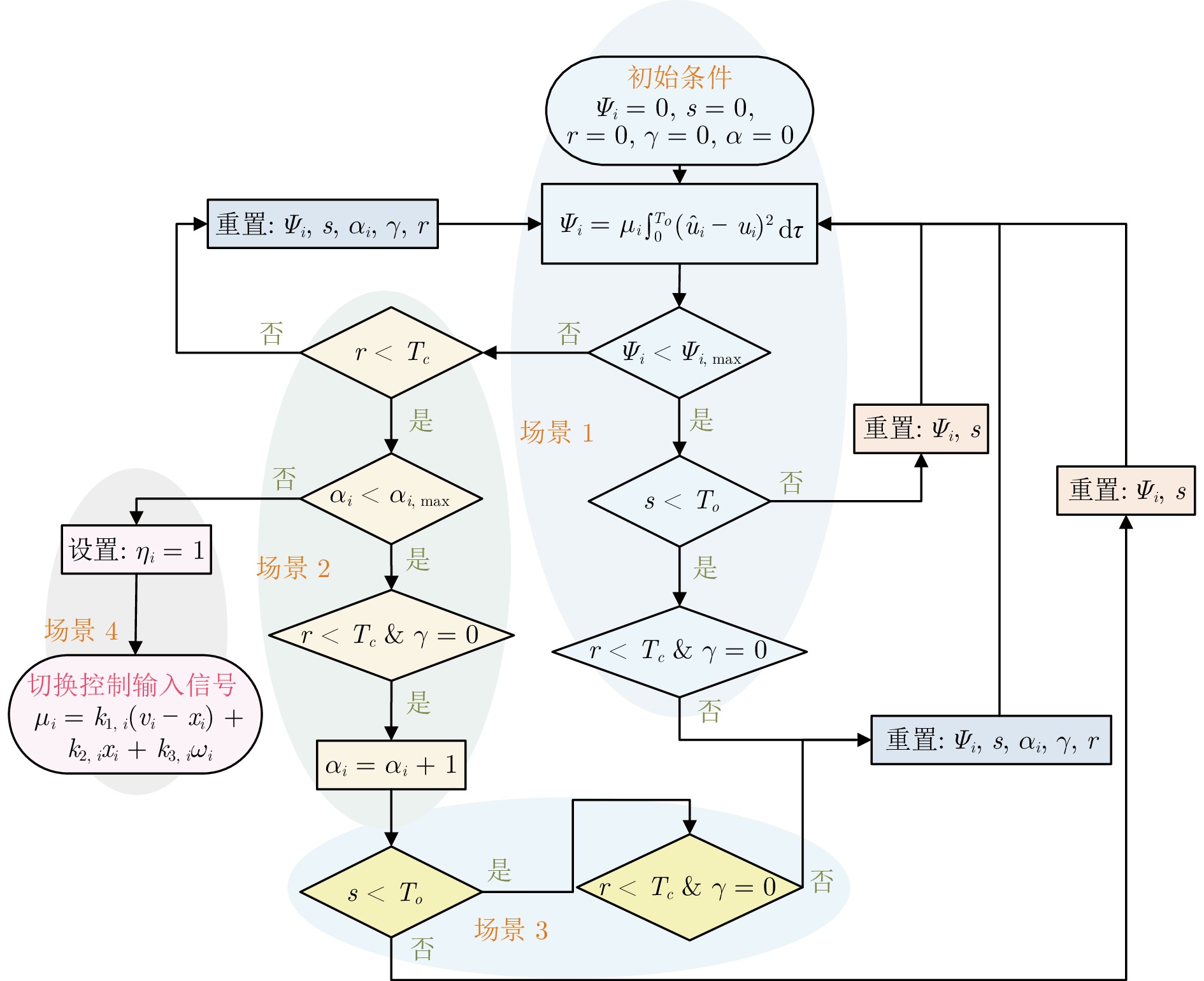 提出一种集攻击检测与防御控制于一体的策略来研究执行器攻击下多智能体系统的弹性跟踪控制问题. 在攻击检测方面, 设计一种基于状态机的动态特征函数建模检测方案. 该方案提出采用线性函数观测器对执行器信号进行估计, 并依据实际信号与估计值之间的误差特性构建攻击检测准则, 以此实现对执行器攻击的有效检测. 在防御策略设计上, 为降低执行器攻击对系统跟踪共识性能的影响, 构建一种基于虚拟网络增强的协同控制系统. 该系统通过与领导者及各跟随者建立连接, 在执行器攻击信息未知的情况下, 确保系统能够实现弹性跟踪控制. 具体而言, 当检测到攻击发生时, 各跟随者的防御控制策略将切换至虚拟层提供的控制信号; 若未检测到攻击, 则维持各跟随者原有的实际控制信号. 与现有研究成果相比, 所设计的控制器无需预先获取恶意节点数量及攻击者位置等先验信息, 具有更强的实用性和适应性. 最后, 通过一个数值算例对所提出的理论算法进行验证, 结果表明该算法能够有效应对执行器攻击, 实现多智能体系统的弹性跟踪控制.