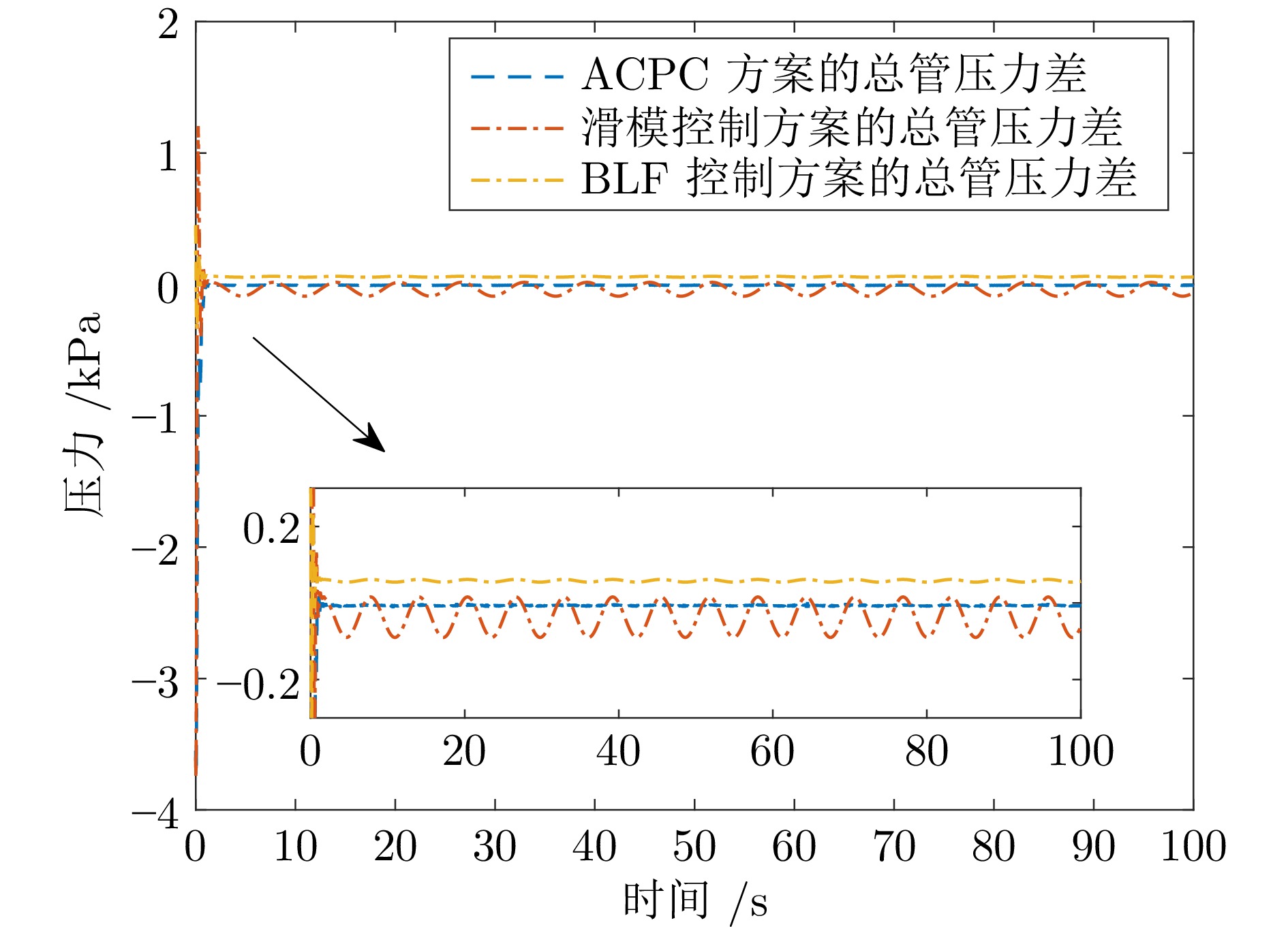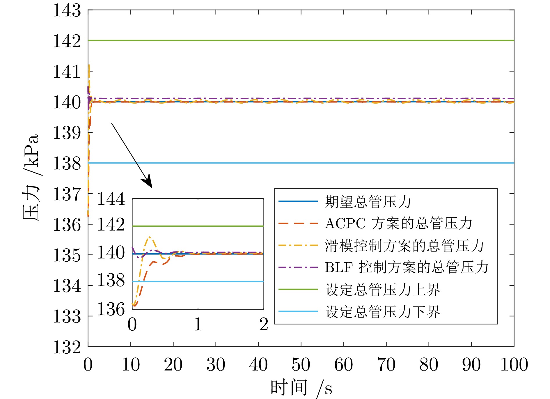 针对城市污水处理进水过程总管压力难以稳定控制, 导致污水处理过程运行不稳定的问题, 提出一种自适应恒压控制(Adaptive constant pressure control, ACPC)方法. 首先, 建立基于时滞特性的城市污水处理进水过程控制模型, 设计基于帕德逼近的等效变换模型, 动态补偿运行过程滞后的影响. 其次, 提出基于障碍李雅普诺夫函数的ACPC方法, 设计转移策略放宽初始总管压力对控制器约束, 保障进水过程在规定压力范围内运行. 然后, 提出神经网络自适应动态调整算法, 根据进水过程运行状态实时调整控制参数, 降低膜组器清洗操作导致的总管压力波动, 提升进水过程的稳定性. 最后, 给出控制器稳定性分析, 证明进水过程中所有变量是半全局最终有界的, 实现总管压力的稳定控制. 实验结果表明, 该方法能够保证城市污水处理进水过程稳定运行.