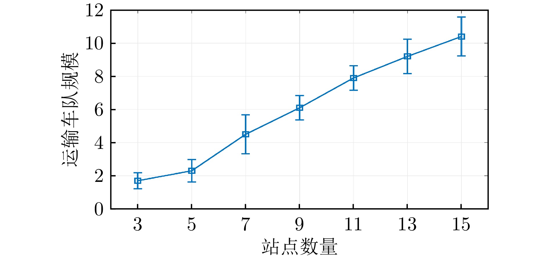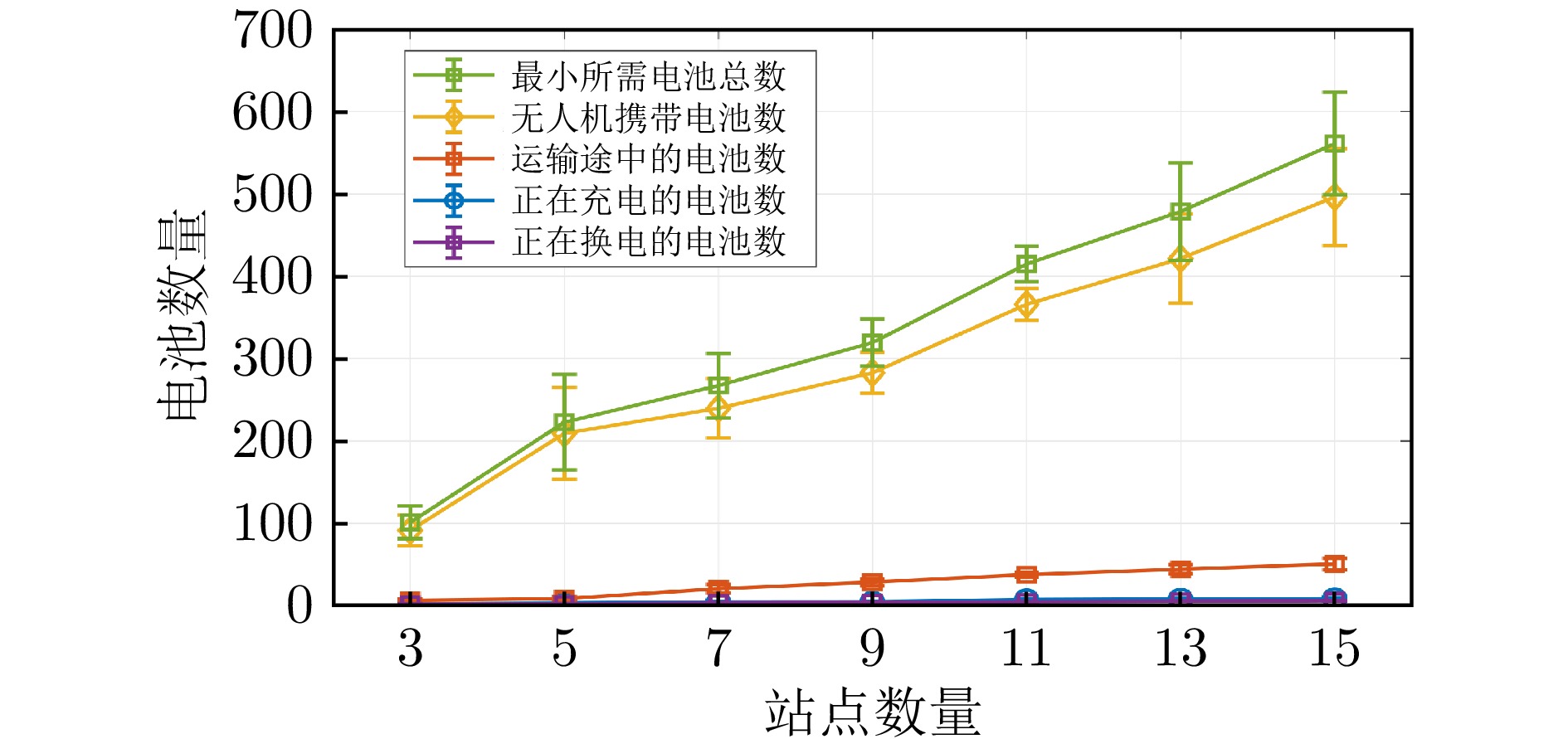 针对城市空中交通系统,提出一种优化方法以同时确定满足乘客需求的最小系统规模和最佳系统再平衡策略.研究构建了流体模型与多服务器M/M/s排队模型的联合框架,描述乘客、飞行器与电池在站点间迁移、换电及充电过程.在该模型框架下对飞行器和电池数量的适定性进行了证明,并给出了系统供需均衡时的必要条件.在此基础上,通过线性规划求解系统供需均衡下的再平衡分配率与最小机队规模,并计算最优充电站位置、电池数量及电池运输车数量.数值仿真分析了影响系统规模的因素,实例验证证明了所提再平衡方法的有效性.