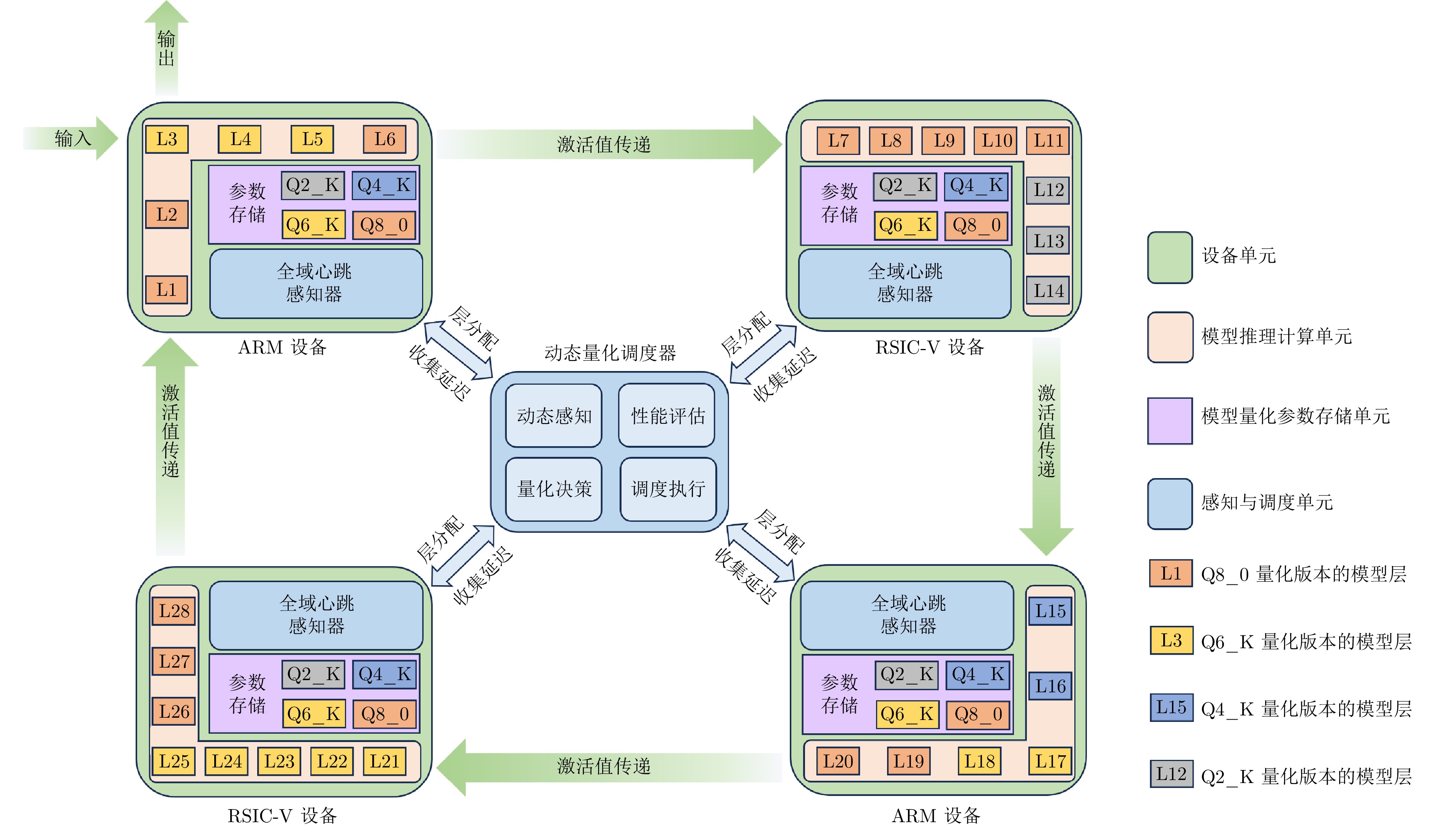在工业4.0时代, 大语言模型向工业边缘异构集群的迁移已成为一项关键技术挑战.边缘设备计算与存储资源受限、动态负载波动、异构架构复杂以及网络高延迟等特性, 使得传统推理框架难以满足工业场景对实时性、鲁棒性和隐私保护的需求.提出一种动态弹性推理框架(Dynama), 设计全域心跳被动感知器和实时弹性量化调度算法.该框架采用管道环并行结构, 实现模型层动态分配与懒加载; 通过被动监测设备延迟向量, 触发实时弹性量化调度算法在不改变层分配前提下优化量化版本, 平衡延迟最小化和精度损失. Dynama通过优化数据传输与量化策略, 显著提升高延迟网络环境下的推理效率, 适应工业边缘的动态环境变化.实验结果表明, Dynama在工业边缘异构集群中展现出优异的实时性与鲁棒性, 为工业智能的落地应用提供高效、可靠的解决方案.
