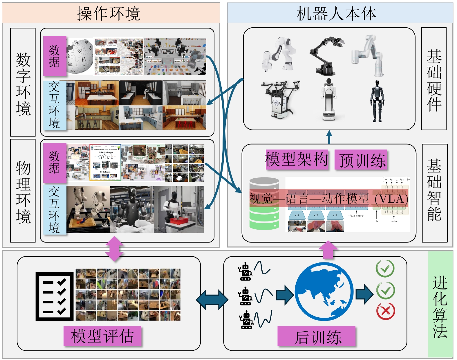 具身智能系统通过智能体与环境不断交互, 从而提升智能体能力, 受到学术界和产业界的广泛关注. 视觉−语言−动作模型作为一种受到大模型发展启发的机器人通用控制模型, 提高了具身智能系统中智能体与环境交互的能力, 大大扩展了具身智能机器人的应用场景. 本文对具身操作中的视觉−语言−动作模型进行综述. 首先, 详细介绍视觉−语言−动作模型的发展历程. 然后, 对视觉−语言−动作模型架构、训练数据、预训练方法、后训练方法和模型评估5个方面的研究现状进行详细分析. 最后, 针对视觉−语言−动作模型发展过程和落地应用中面临的挑战和未来可能的发展方向进行总结.