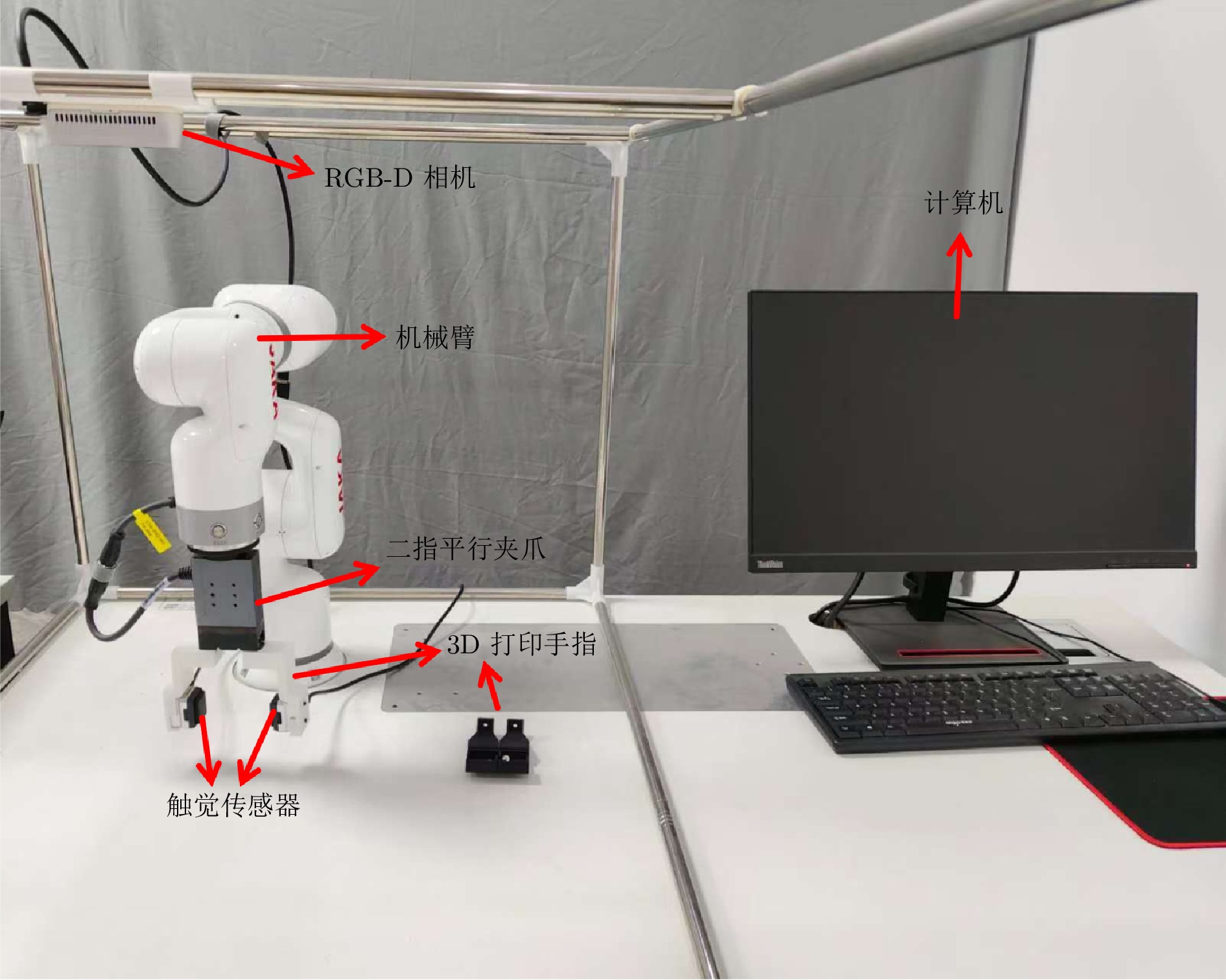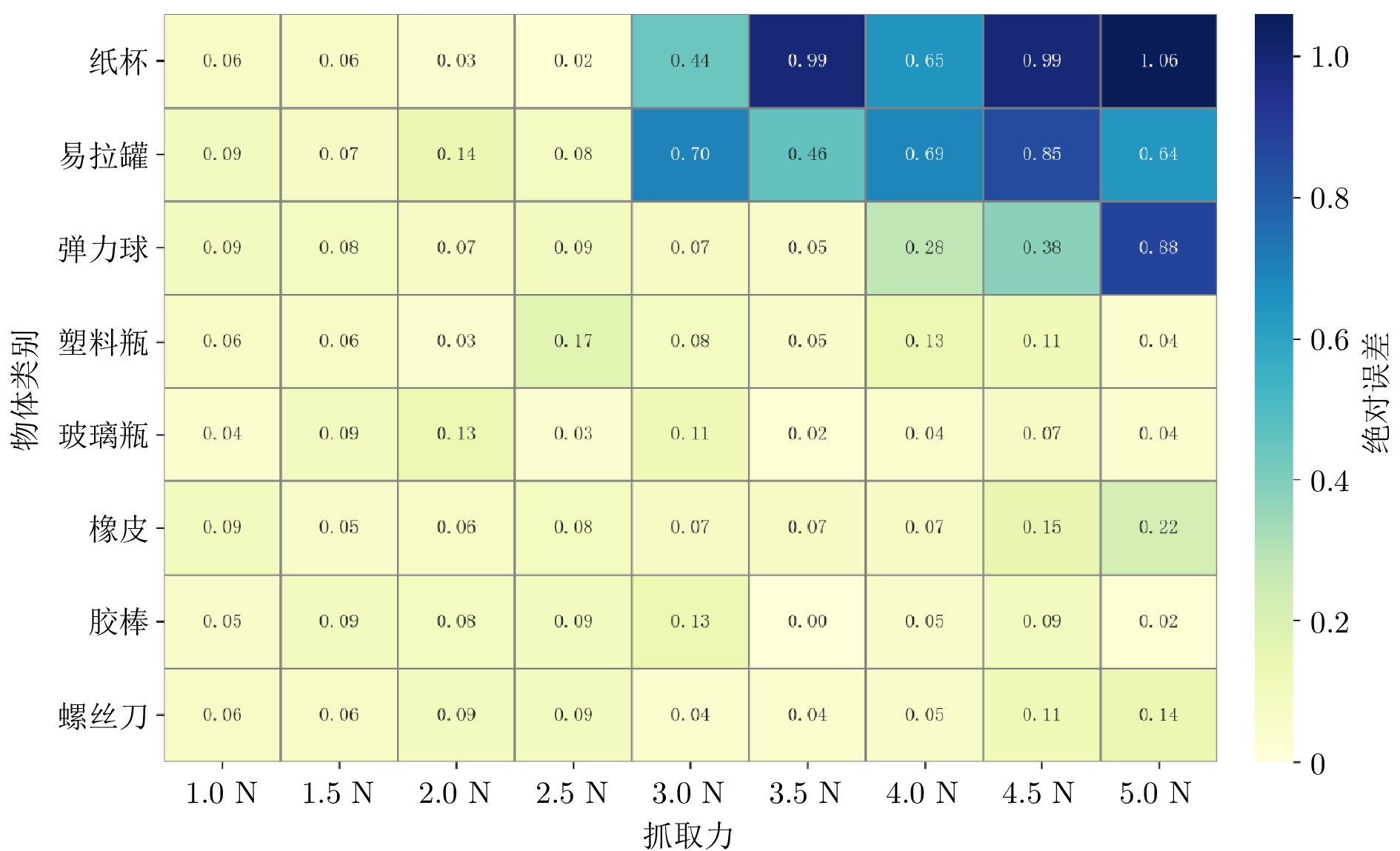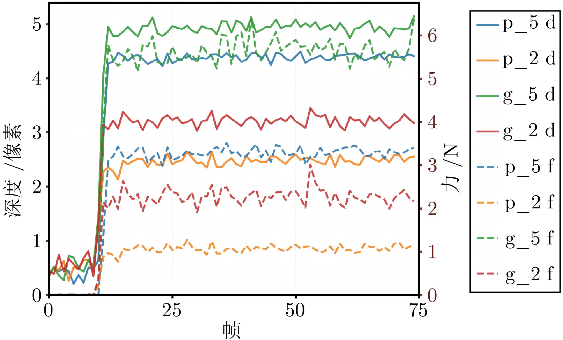随着机器人技术快速发展, 其对精细感知能力需求日益增长. 然而, 现有机器人仍难以具备如人类般灵活的操作能力. 在精细抓取任务中, 机器人恒力抓取策略存在局限性: 抓取力过大易损伤物体, 抓取力过小则导致抓取不稳. 为应对上述问题, 提出一种基于视觉与触觉融合的机器人自适应力控抓取方法. 该方法由视觉模块、触觉模块和抓取策略组成: 视觉模块用于预测目标抓取位置; 在接触阶段, 触觉模块借助视触觉传感器恢复触觉深度并估算接触面积与法向力; 随后, 通过最大深度变化率和帧间均方差进行形变判定, 并触发抓取力调整策略, 从而实现“渐进增力–形变检测–力回退”的仿生反馈抓取机制. 实验结果表明, 该方法将多种日常物体的整体抓取成功率由87.50% 提升至98.75%, 在易碎物体抓取中实现零损坏.