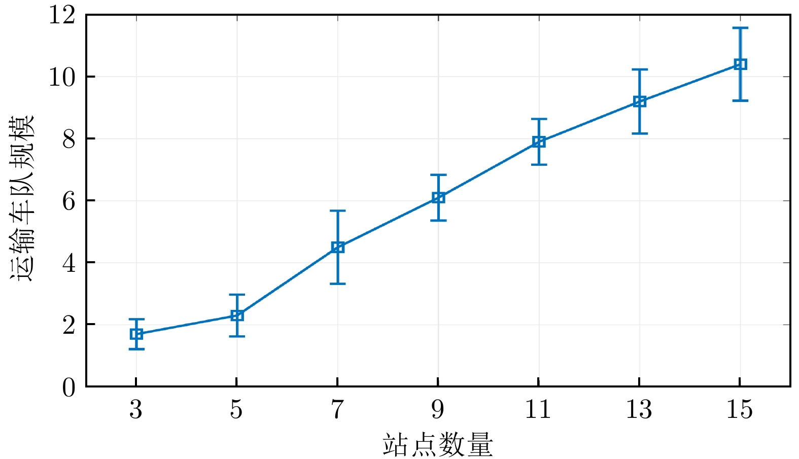针对城市空中交通系统,提出一种优化方法以同时确定满足乘客需求的最小系统规模和最佳系统再平衡策略.研究构建了流体模型与多服务器M/M/s排队模型的联合框架,描述乘客、飞行器与电池在站点间迁移、换电及充电过程.在该模型框架下对飞行器和电池数量的适定性进行了证明,并给出了系统供需均衡时的必要条件.在此基础上,通过线性规划求解系统供需均衡下的再平衡分配率与最小机队规模,并计算最优充电站位置、电池数量及电池运输车数量.数值仿真分析了影响系统规模的因素,实例验证证明了所提再平衡方法的有效性.