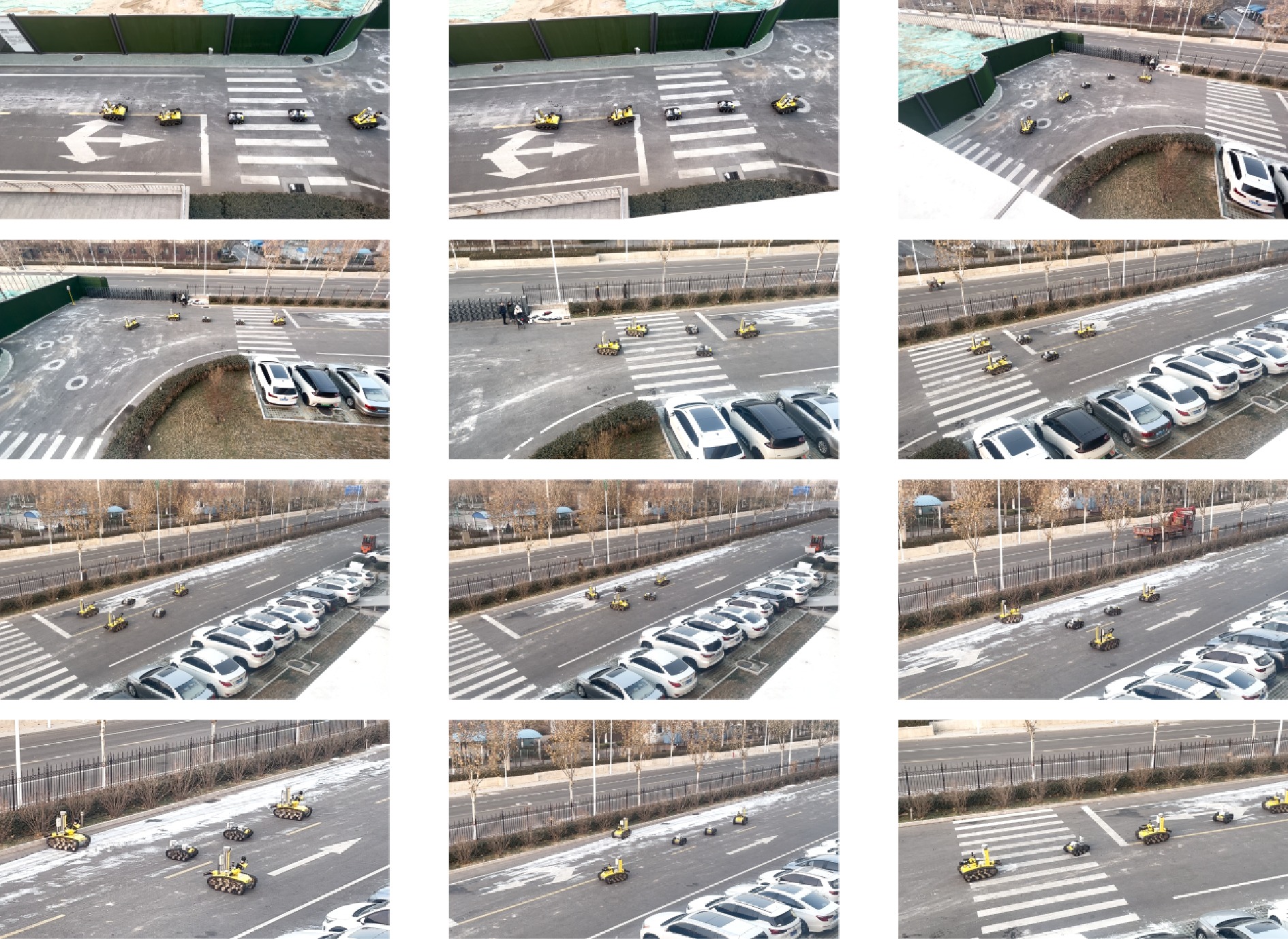 复杂火灾场景下传统消防手段存在全局感知能力不足、协同能力弱等问题, 因此提出一种基于无人机空中引导的多消防机器人协同作业系统. 通过构建空−地异构协同架构, 融合无人机全局态势感知与地面消防机器人精准作业能力, 实现火灾动态环境下的高效协同灭火. 通过融合先验地图、高空侦察信息和多视角观测信息, 构建适用于灭火指控的多图层火场地图, 在保障关键信息获取的同时兼顾建图效率. 同时结合水柱轨迹模型、多视角观测信息及结构层数据, 实现水柱轨迹和落点的准确检测. 然后设计队列式与多形态主从编队模式, 配合快速队形重构算法生成编队参考信号. 进而, 基于提出的柔性预定性能函数设计无人机位姿矢量控制器, 以及基于改进视距导引法设计多消防机器人编队控制器. 最后, 开展空−地多机协同控制算法的仿真验证, 并将系统集成到开诚RXB-MC80BD消防机器人上进行应用测试.
