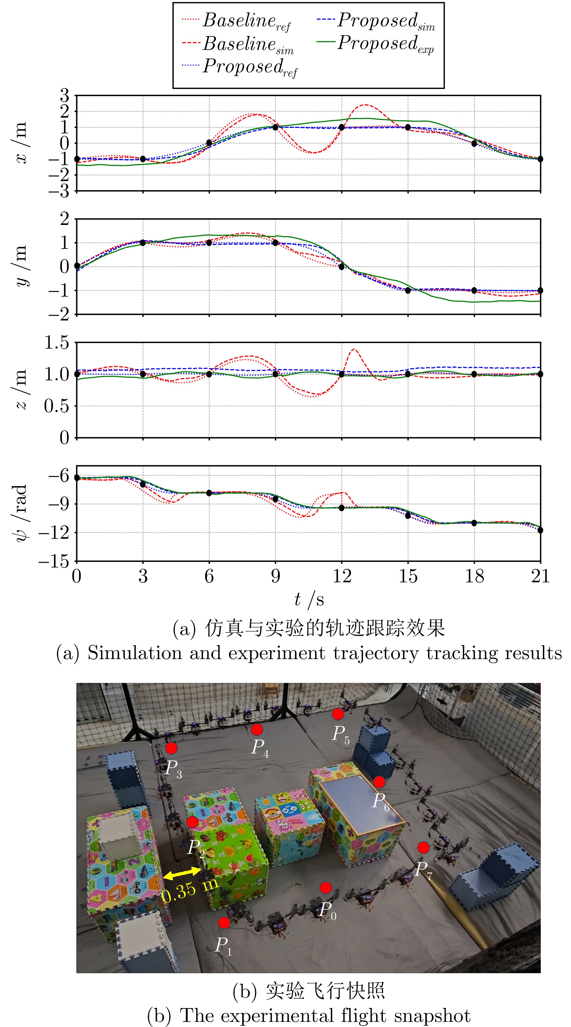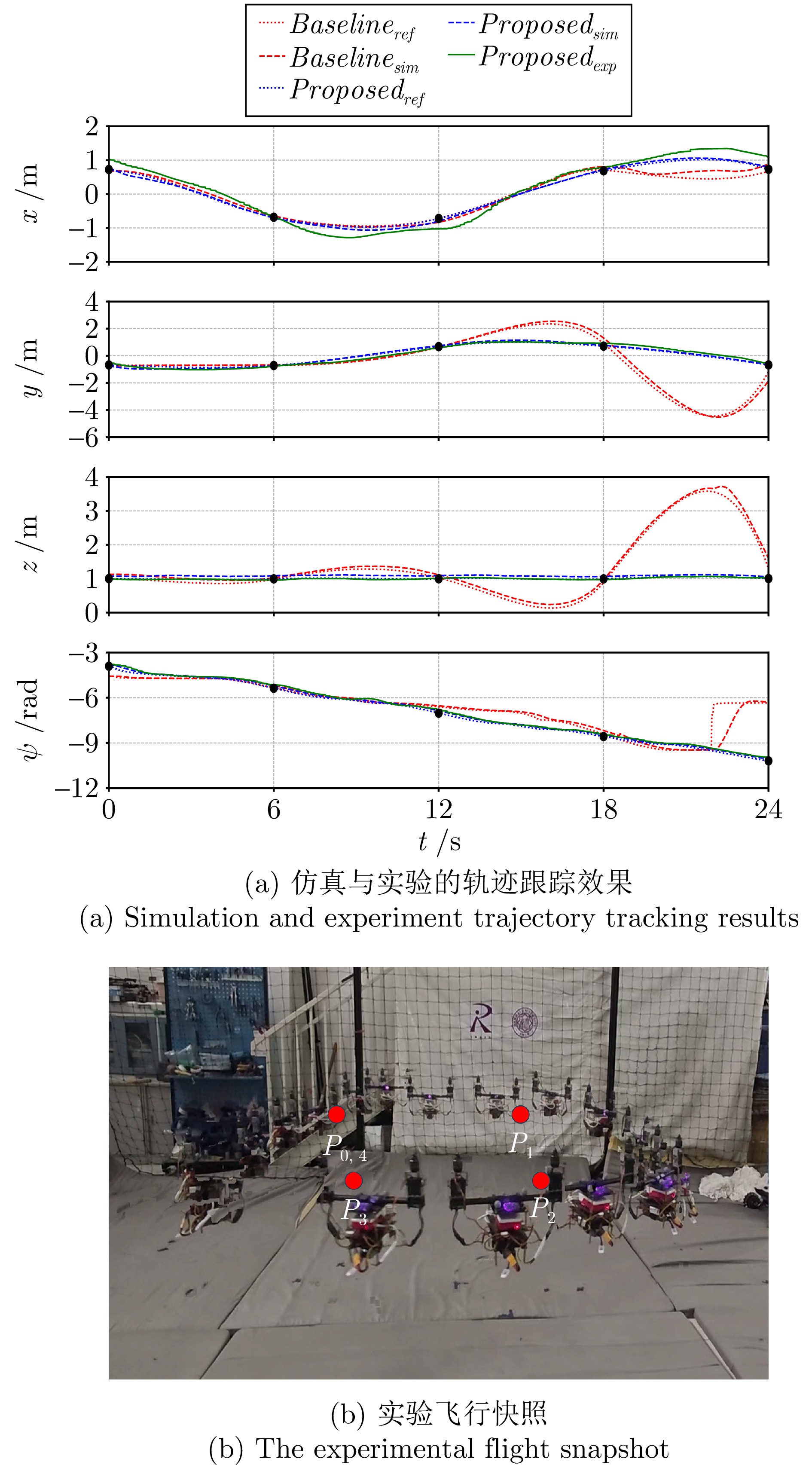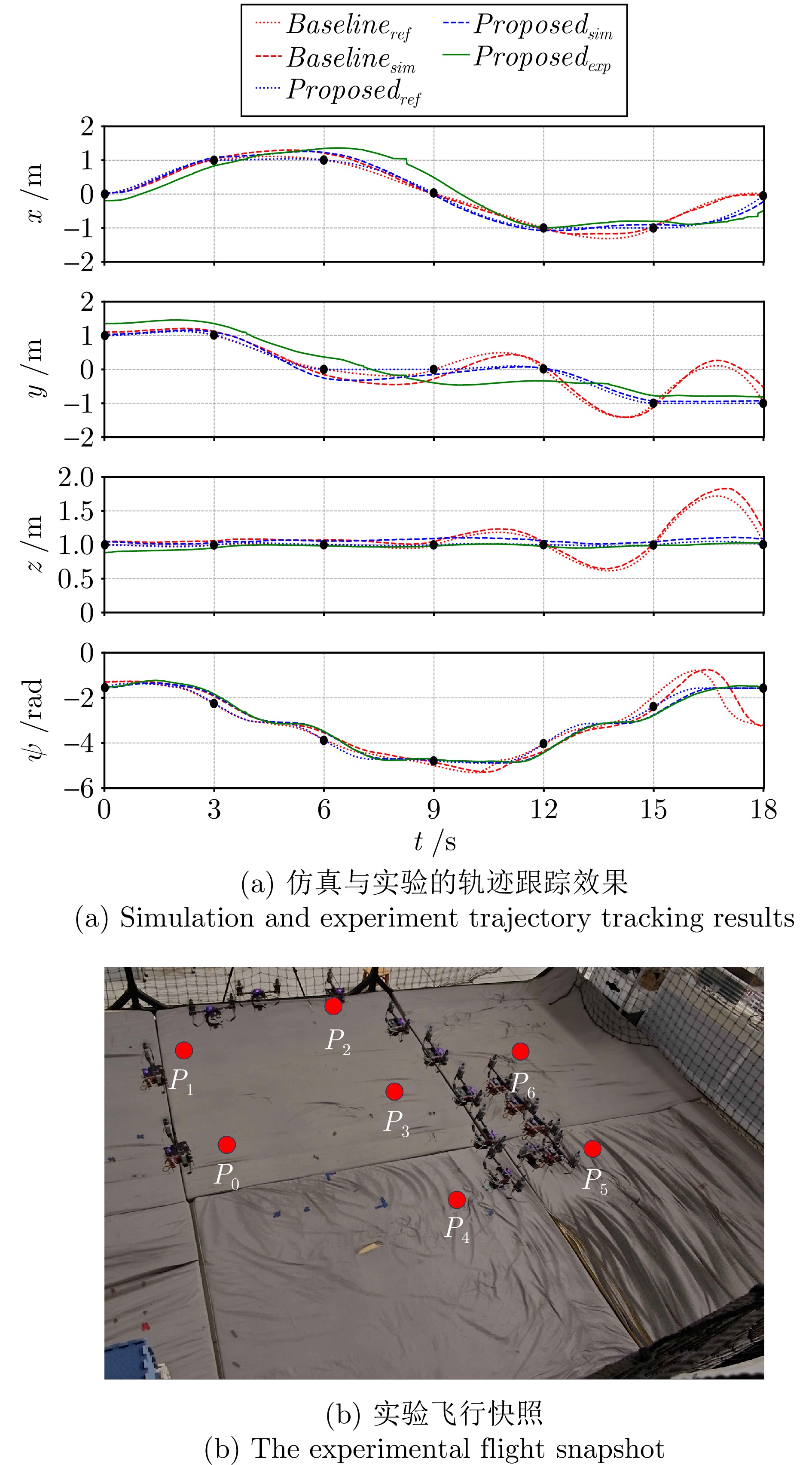 多四旋翼无人机协同编队运输技术因其高容错性和强灵活性等特点, 近年来受到广泛关注. 针对受到螺旋桨转速约束和外界环境干扰影响的多四旋翼无人机系统, 提出一种分层控制方案以实现多无人机协同编队运输. 该方案设计主要包含分布式协调器设计和跟踪控制器设计. 在分布式协调器中, 位置协调器基于虚拟领导者的位置、速度等信息生成各带载无人机的期望位置, 然后微分平坦器输出无人机的期望无偏轨迹; 跟踪控制器采用非线性模型预测控制、角速度控制以及螺旋桨转速分配算法相结合的策略, 为各带载无人机生成合理的螺旋桨转速指令, 确保无人机精确跟踪其期望轨迹. 在所提方案作用下, 多带载无人机能维持期望编队队形并跟踪虚拟领导者, 从而实现多无人机协同编队运输. 特别地, 当省略位置协调器时, 该方案可简化为单无人机轨迹跟踪控制器. 数值仿真包括单机轨迹跟踪和多机协同运输两个场景, 结果表明: 在单机跟踪任务中, 所提方案展现出良好的跟踪精度; 在多机运输场景下, 多无人机能够有效实现协同编队运输.