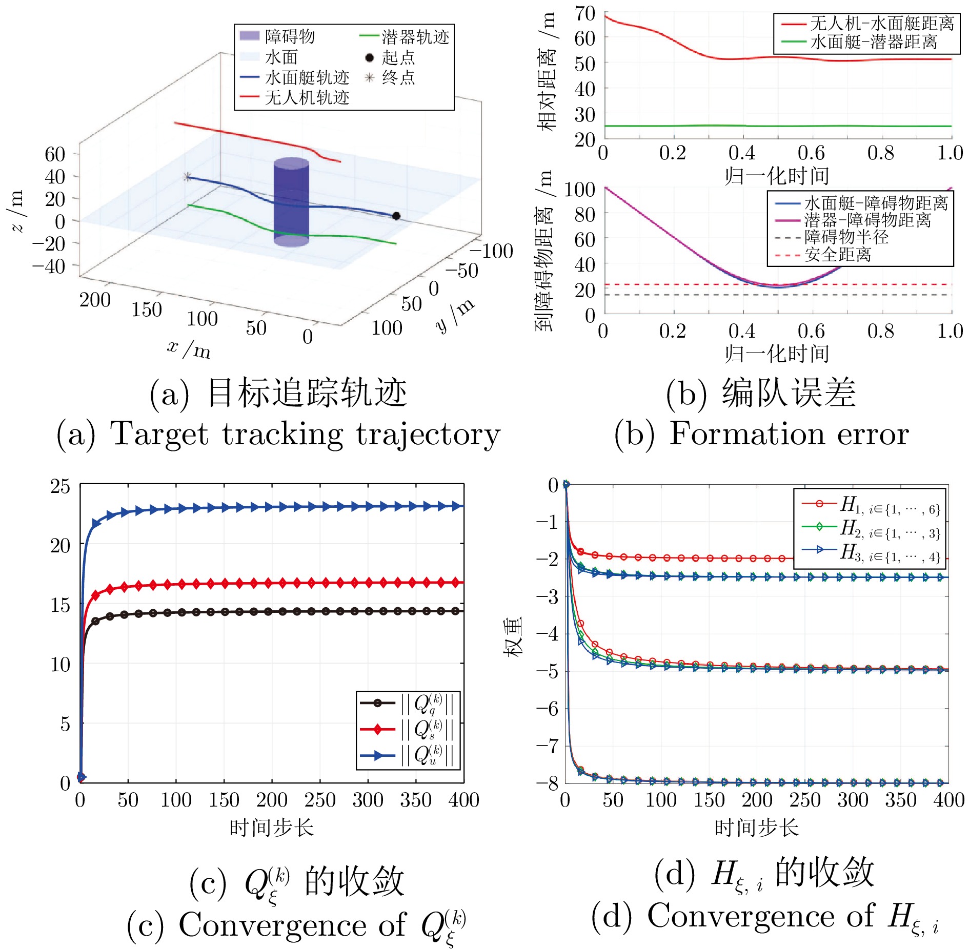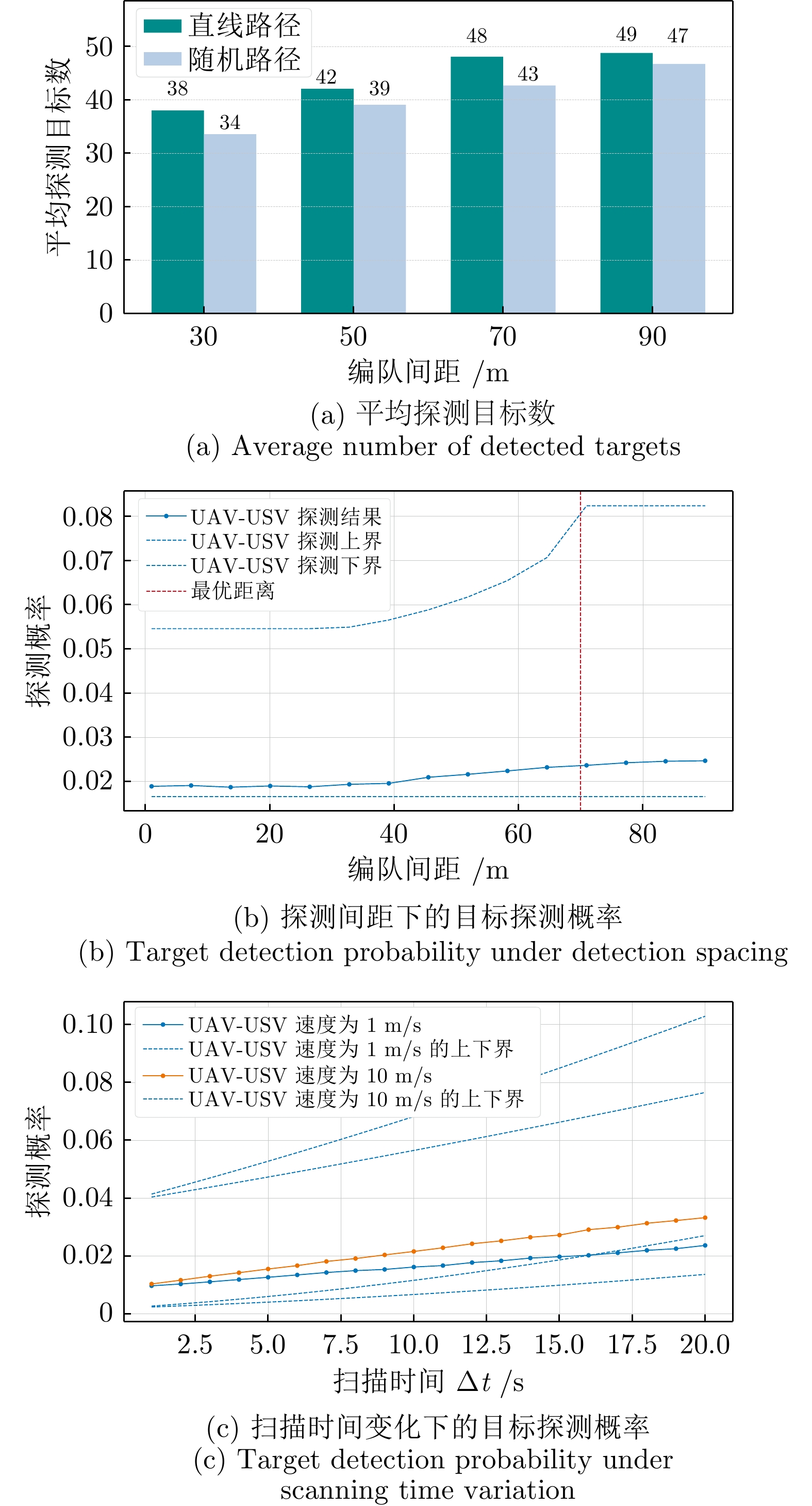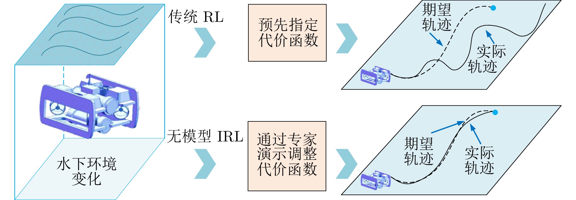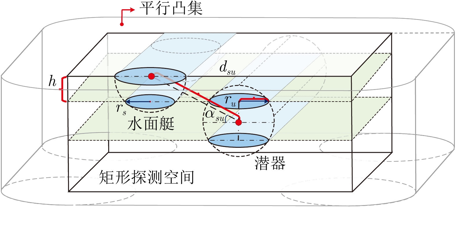 提出一种基于空−海−潜跨域无人平台协同的海上目标探测追踪策略. 首先, 构建无人机−水面艇−潜器协同的海上跨域无人系统; 进一步, 针对海上目标的高机动性以及无人平台自身约束, 采用测度理论解析无人机−水面艇−潜器最佳探测编队队形, 实现目标探测概率最大化; 当探测到目标后, 设计基于逆强化学习的无人机−水面艇−潜器编队控制器, 实现障碍物环境下水面/水下目标的可靠有效追踪. 最后, 通过仿真与实验验证了所提方法的有效性. 结果表明, 所提探测模式可以实现有限时间内移动目标探测概率最大化, 同时所提逆强化学习编队控制器可以在保持队形稳定的基础上, 结合动态避障策略, 实现复杂环境下跨域无人平台安全协同追踪.