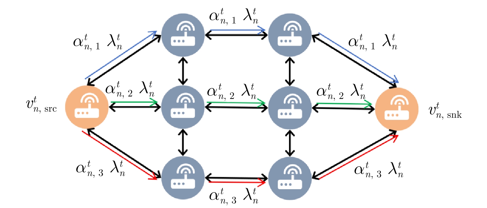 路由是优化网络资源分配的重要方法. 然而, 传统路由算法依赖静态策略优化单一服务质量指标, 难以应对多类型流量爆发性增长下的差异化需求. 尽管深度强化学习为动态网络环境下的路由优化提供了新思路, 现有方法仍缺乏对流量类型的精细化感知能力, 无法灵活调整路由策略. 为此, 本文针对不同类型流量的差异化路由需求, 设计一种基于分层策略强化学习的流量感知路由算法. 首先, 引入流量分类模块, 实现对不同流量差异化业务需求的精细感知. 其次, 利用图卷积网络对网络拓扑进行高效建模, 并在此基础上设计分层决策网络以及差异化奖励函数, 引导智能体生成自适应路由决策, 实现对各流量类别路由策略的动态调整. 同时, 在演员-评论家框架中引入全局注意力机制, 增强智能体对网络状态时空依赖关系的建模能力, 并通过广义优势估计和近端策略优化算法提升训练的效率与稳定性. 最后, 在多种拓扑网络上验证了所提算法的有效性.