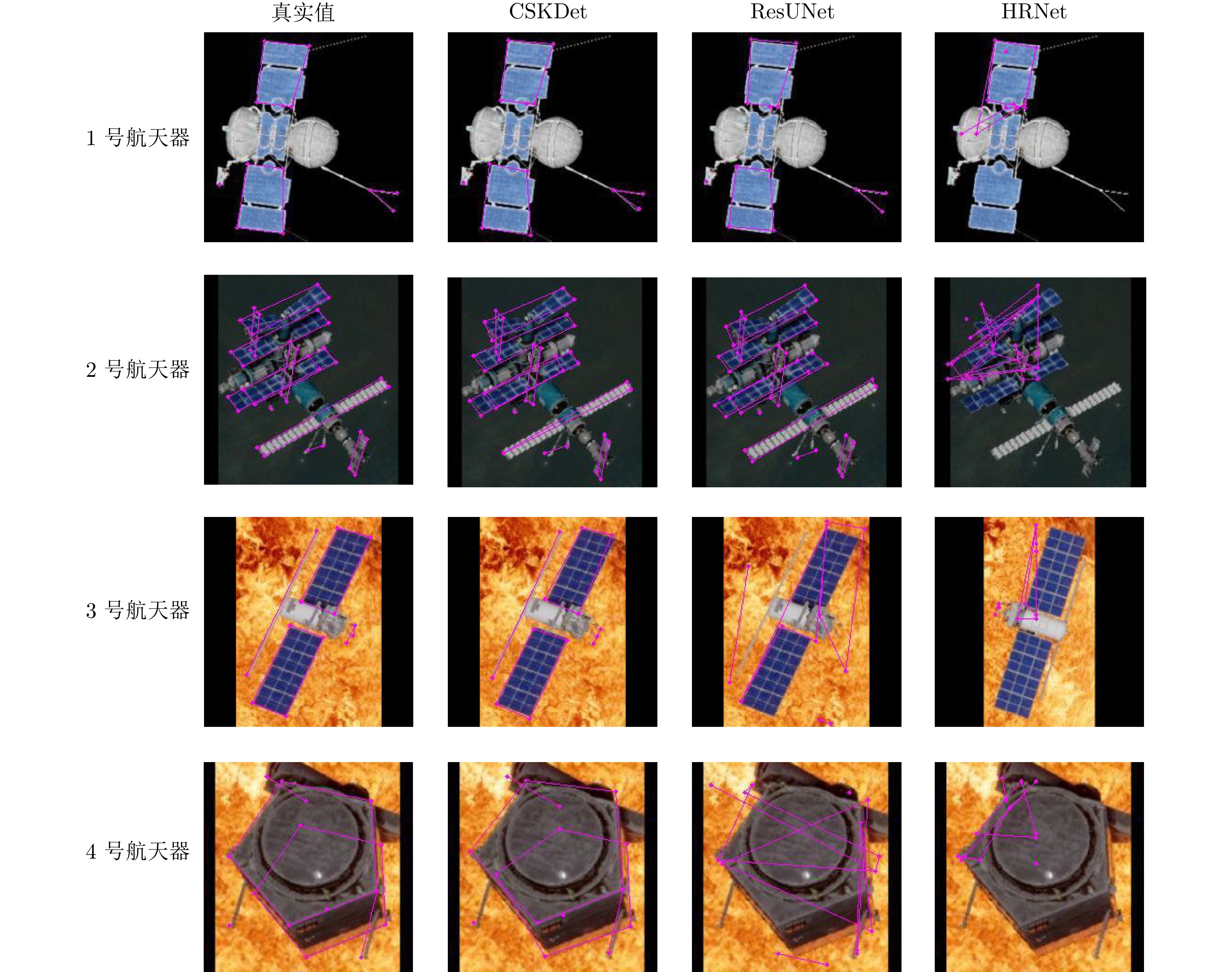 航天器视觉位姿估计是空间智能在轨服务的技术核心, 其往往采用关键点检测与位姿解算相结合的两阶段方案. 然而, 现有的航天器关键点检测方法通常利用单一航天器的视觉图像数据进行训练, 因此, 它们无法适用于其他类型的航天器目标, 这严重限制了空间在轨服务的推广与应用. 为此, 提出一种基于视觉特征提示的跨类别航天器关键点检测方法. 当针对未知类别的新目标航天器时, 该方法仅需要给定一张支持图像和对应的关键点提示, 便可以准确预测出目标航天器关键点在查询图像中的位置. 为进一步验证所提方法的有效性, 依托虚拟仿真平台构建一个包含多种航天器、二维关键点标注以及三维姿态标注的多航天器位姿估计数据集. 在该数据集上进行的大量实验结果表明, 所提方法在跨类别航天器关键点检测任务中表现出色, 显著优于当前主流的关键点检测方法. 此外, 该方法与传统PnP算法相结合, 可以实现对任意航天器的高精度位姿估计. 本文方法的代码和数据集均已开源, 详见https://github.com/Dongzhou-1996/CSKDet .
