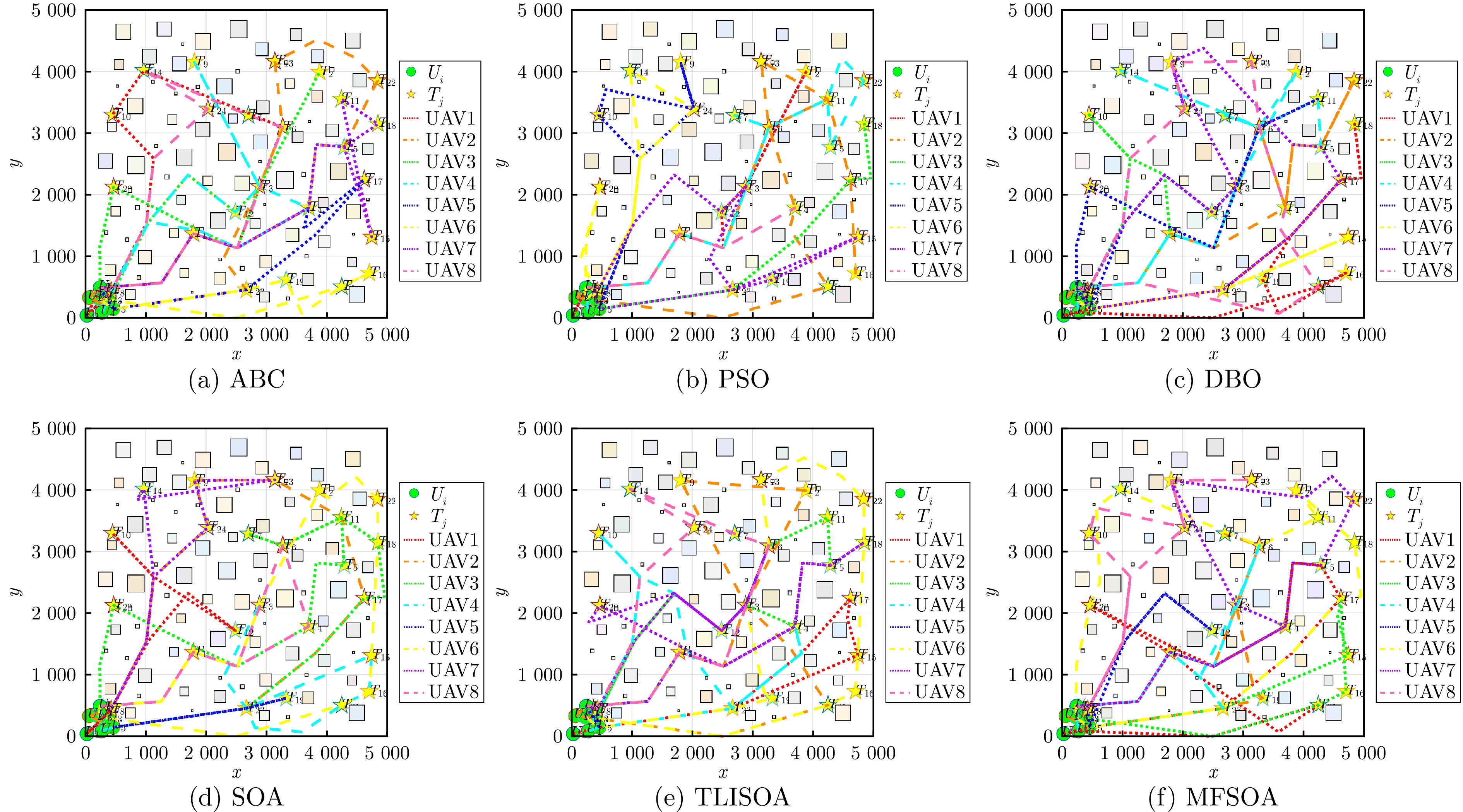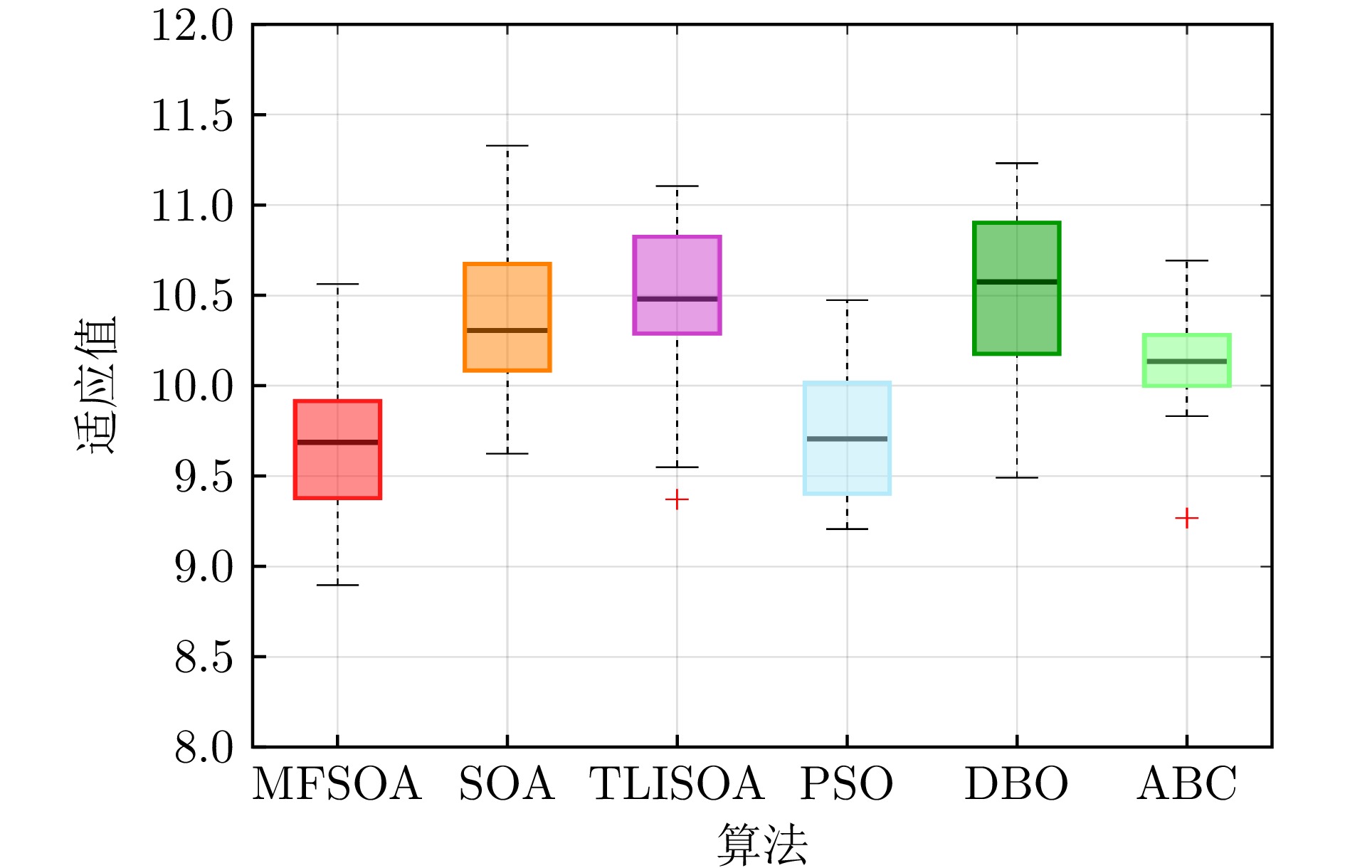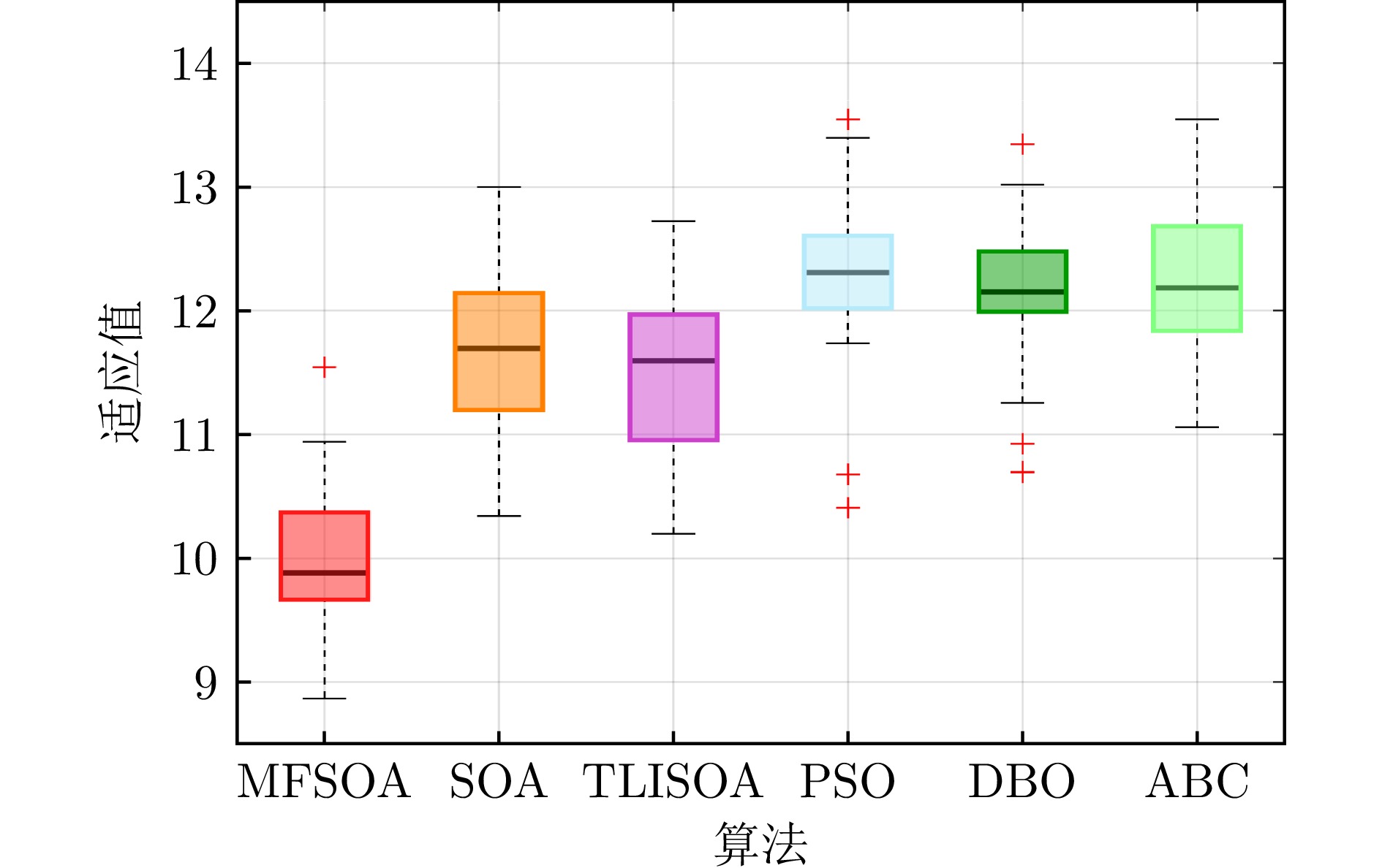 针对多无人机在多重约束下的协同任务分配问题, 提出一种面向多无人机协同任务分配的多策略融合海鸥优化算法(MFSOA). 该算法由时间代价、能耗代价、负载均衡、任务时序及多约束条件构建多无人机协同任务分配目标优化模型. 为提升算法寻优效率, 采用Tent混沌映射增强种群多样性, 结合精英进化策略优化迭代过程中的种群质量; 通过设计多方向自适应迁徙策略增强算法全局寻优能力, 避免算法陷入局部最优; 构建基于精英个体的攻击策略平衡算法的全局探索与局部开发能力, 提升算法的寻优稳定性. 实验结果表明, MFSOA在多场景下均表现出优异的综合性能, 其寻优能力相较对比算法提升约3%~13%, 验证了该算法求解多无人机协同任务分配问题的有效性与可靠性.