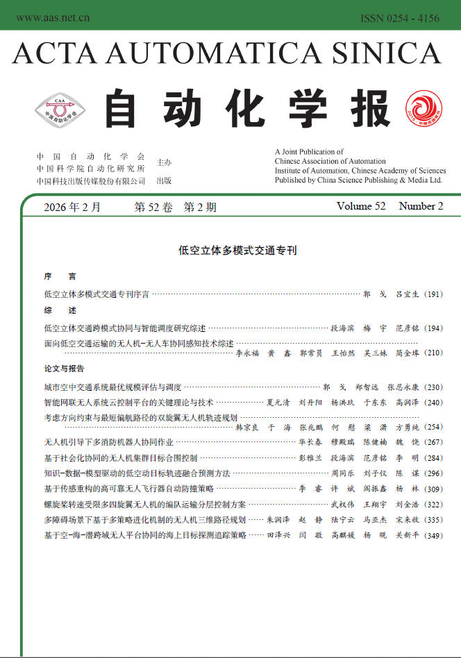 随着低空立体交通系统进程的加速推进, 空中、地面与水面三维异构交通平台的协同愈加关键. 智能调度与资源优化的深度融合, 正逐步成为智慧城市建设与应急响应体系中不可或缺的核心支撑力量. 围绕多模式协同调度的研究热点展开综述. 首先, 综合回顾了无人机、无人车与无人艇在多源信息融合、环境感知与自适应决策方面的协同机制. 其次, 从任务分解、路径规划、协同控制与系统调度四个层面, 总结了强化学习、图优化、进化算法等在复杂动态环境下的典型调度方法. 进一步地, 梳理了集中式、分布式与混合式控制架构下的任务分配与通信策略, 并分析了传感器数据、仿真数据与运行大数据在调度优化中的作用. 最后, 探讨了当前低空立体交通系统在资源分配、安全保障与跨域协同中的关键挑战, 并展望了基于大数据驱动与智能增强的低空立体交通系统未来发展路径.