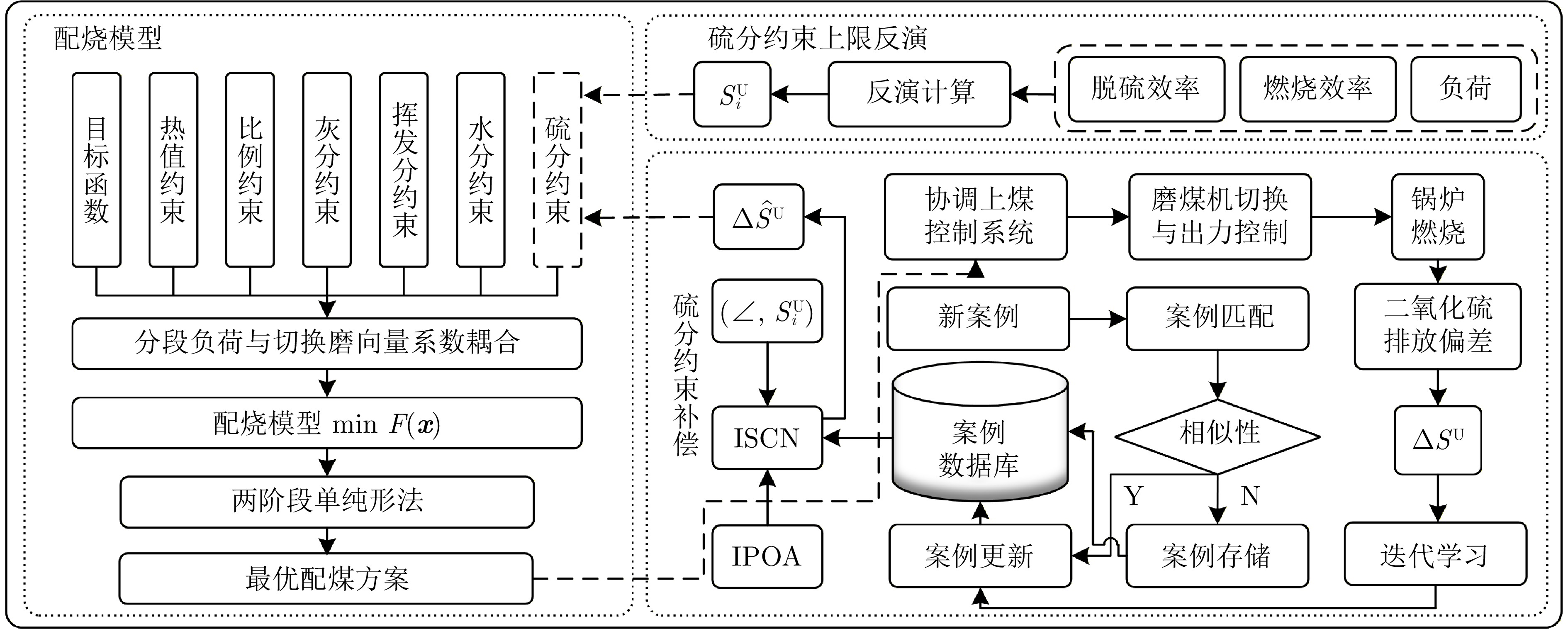 针对火电企业人工配烧方案制定效率低、成本高的问题, 本文首次系统性开展面向分段计划负荷的耦合配烧优化模型与硫分约束界调整研究. 首先, 为保证更快速与更精准地制定配烧方案, 通过磨煤机组的切换磨向量建立分段计划负荷与配烧优化模型之间的耦合关系, 实现以计算机优化模型为主的数字化配烧. 然后, 针对耦合配烧优化模型中的硫分约束值受燃煤硫转化、脱硫等多重不确定性影响的问题, 在反演计算硫分约束界的基础上, 基于改进随机配置网络建立硫分约束界前馈补偿模型. 接下来, 为保证前馈补偿模型的历史训练样本案例数据库的最优性, 通过监测机组的实时生产数据全周期迭代动态更新案例数据库, 进而提升前馈补偿模型的全周期预测精准性. 基于该模型开发的软件系统应用结果表明: 配烧方案制定时间从原来的40分钟/次缩短至5分钟/次以内; 在满足环保要求的前提下, 优化后配烧成本较人工经验方案平均降低21 CNY/t, 取得显著的效率与经济效益.