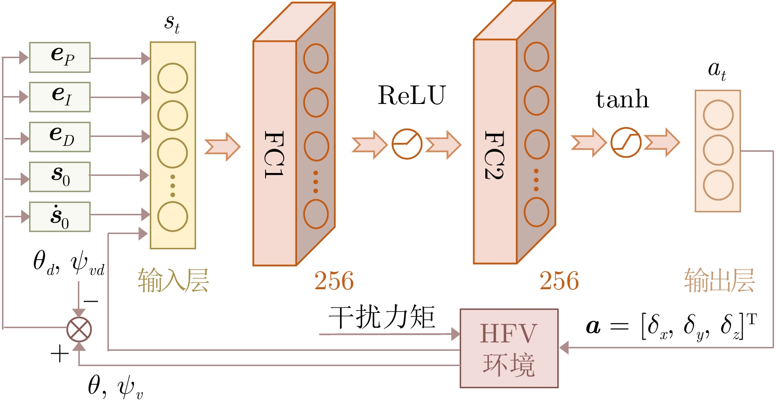 针对高超声速飞行器在外界干扰与模型不确定性影响下的制导控制难题, 提出一种融合双延迟深度确定性策略梯度与交叉熵方法 (CEM) 的进化强化学习框架. 首先, 构建高超声速飞行器的运动模型与制导控制一体化模型; 其次, 将复杂干扰环境下的多约束控制问题转化为强化学习决策优化过程, 依托深度强化学习的无模型数据驱动特性, 建立从状态观测到舵偏角指令的端到端映射机制. 同时, 引入基于CEM的动作空间采样机制, 通过Q 值最大化准则筛选精英候选动作集, 利用价值函数引导进化搜索方向, 有效克服传统强化学习探索低效、盲目性强的缺陷, 提升样本利用效率. 最后, 仿真结果表明所提算法能够适应初始高度偏差 ±300 m、速度偏差 ±200 m/s及气动参数 ±40%不确定性等变任务飞行条件, 且在终端控制精度与鲁棒性等核心指标上显著优于传统控制方法.