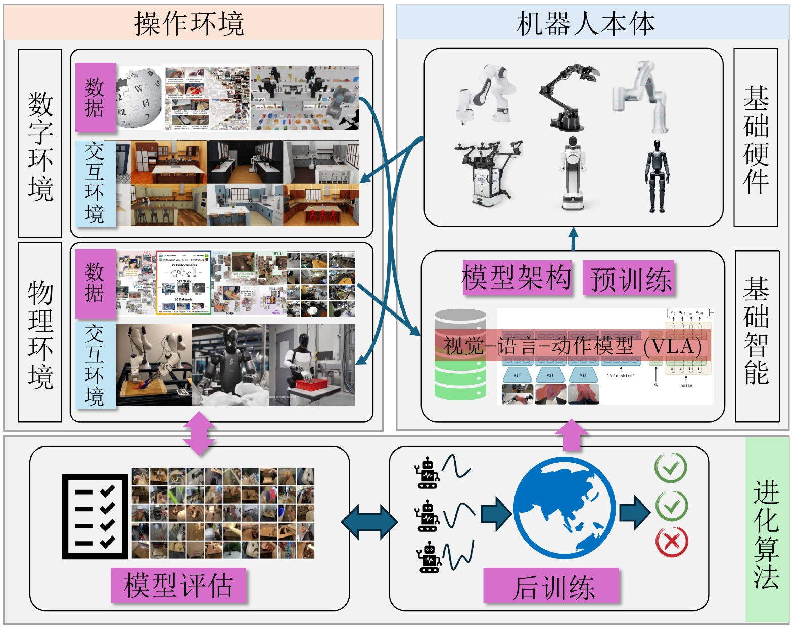 具身智能系统通过智能体与环境不断交互, 从而提升智能体能力, 受到学术界和产业界的广泛关注. 视觉−语言−动作模型作为一种受到大模型发展启发的机器人通用控制模型, 提高了具身智能系统中智能体与环境交互的能力, 大大扩展了具身智能机器人的应用场景. 本文对具身操作中的视觉−语言−动作模型进行综述. 首先, 详细介绍视觉−语言−动作模型的发展历程. 然后, 对视觉−语言−动作模型架构、训练数据、预训练方法、后训练方法和模型评估5个方面的研究现状进行详细分析. 最后, 针对视觉−语言−动作模型发展过程和落地应用中面临的挑战和未来可能的发展方向进行总结.