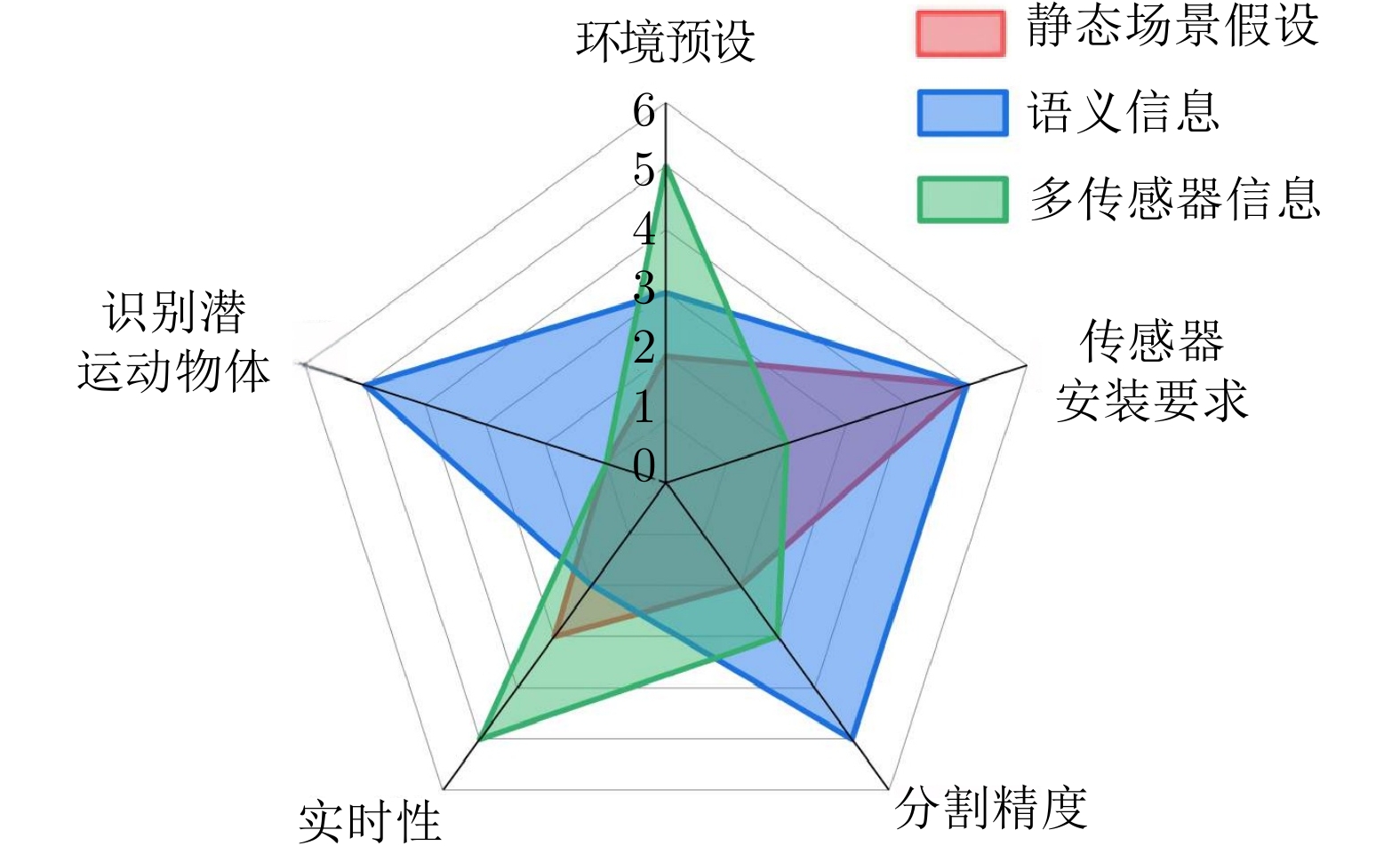 作为移动机器人与自动驾驶领域的关键基础技术, 视觉同时定位与地图构建(V-SLAM)在动态环境中面临严峻挑战. 由动态物体引起的特征匹配错误常常导致定位偏差、地图失真以及系统鲁棒性受损. 运动分割技术是提高V-SLAM性能的重要手段, 但在复杂动态场景中准确区分静态和动态元素仍极具挑战性. 本文系统梳理V-SLAM运动分割研究进展, 根据对环境的潜在假设, 将现有方法分为三个主要研究范式, 并给出各范式的技术原理, 代表性策略的核心优势、本质局限及适用边界. 最后展望未来的研究方向.
