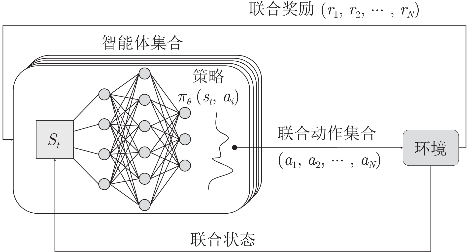 在部分可观测且动态变化的环境中, 深度强化学习(DRL) 为多智能体路径规划(MAPF) 提供了具备自学习、泛化与动态适应能力的分布式求解途径. 然而,DRL 在该问题中仍存在协调性不足与局部近视两个挑战: 智能体间的隐式交互易引发冲突, 仅依赖局部观测的反应式避障又导致路径冗长与全局偏离. 为此, 提出一种基于多模态特征融合与局部感知推理的分布式路径协作方法(local yielding and reasoning for agents, LYRA). 该方法在分布式DRL 框架下构建从感知到决策的学习体系, 使智能体能依托局部观测实现推理与隐式让行. 多模态状态编码器融合局部碰撞线索与全局路径语义, 平衡即时避障与长期导航目标; 奖励引导的路径学习策略保证局部决策与全局任务一致; 群体协作机制通过隐式优先级推理化解局部冲突; 自适应学习率机制动态调节策略更新以提升训练稳定性. 实验结果表明, LYRA 在任务成功率与安全性上较基线方法分别提升约35 % 和25 %, 在不同环境复杂度下保持良好泛化性, 为实现高效鲁棒的分布式多智能体路径规划提供了新范式.