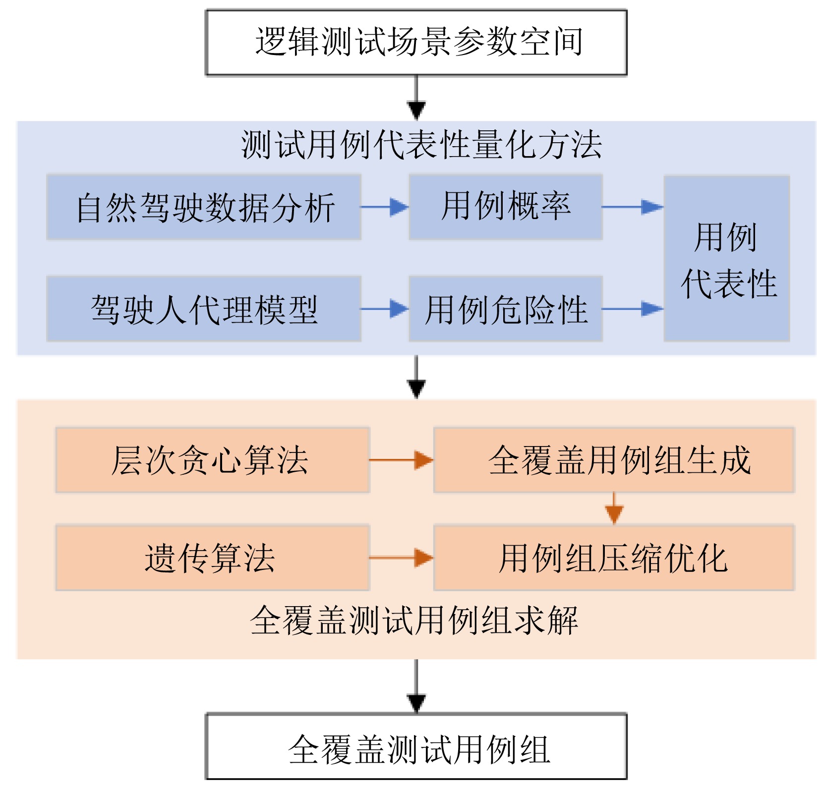 基于场景的测试方法是验证自动驾驶系统安全性的主流手段, 然而逻辑场景使用参数空间的形式对场景进行描述, 当被测系统性能存在差异时, 第三方检测机构难以使用同样的测试用例在保证测试公平性的同时兼顾测试覆盖率. 为此, 提出一种基于测试用例代表性的自动驾驶系统逻辑场景全覆盖测试用例生成方法. 首先建立自动驾驶系统全覆盖测试用例生成框架; 其次提出综合分析自然驾驶概率分布及危险情况的测试用例代表性量化评价方法; 最后开发一种基于热度驱动层次贪心算法和遗传算法的差异化样本组合空间全覆盖问题优化求解方法, 获取测试用例参数组合, 实现逻辑场景参数空间全覆盖. 使用前车切入场景对提出的方法进行验证. 结果表明, 提出的方法在逻辑场景参数空间覆盖率(100%)、测试边界拟合误差(0.08)方面均显著优于当前主流的蒙特卡洛方法(覆盖率84.3%、拟合误差0.19)与组合测试方法(覆盖率86.5%、拟合误差0.14), 可有效帮助检测机构建设公平、高效的测试场景生成框架.