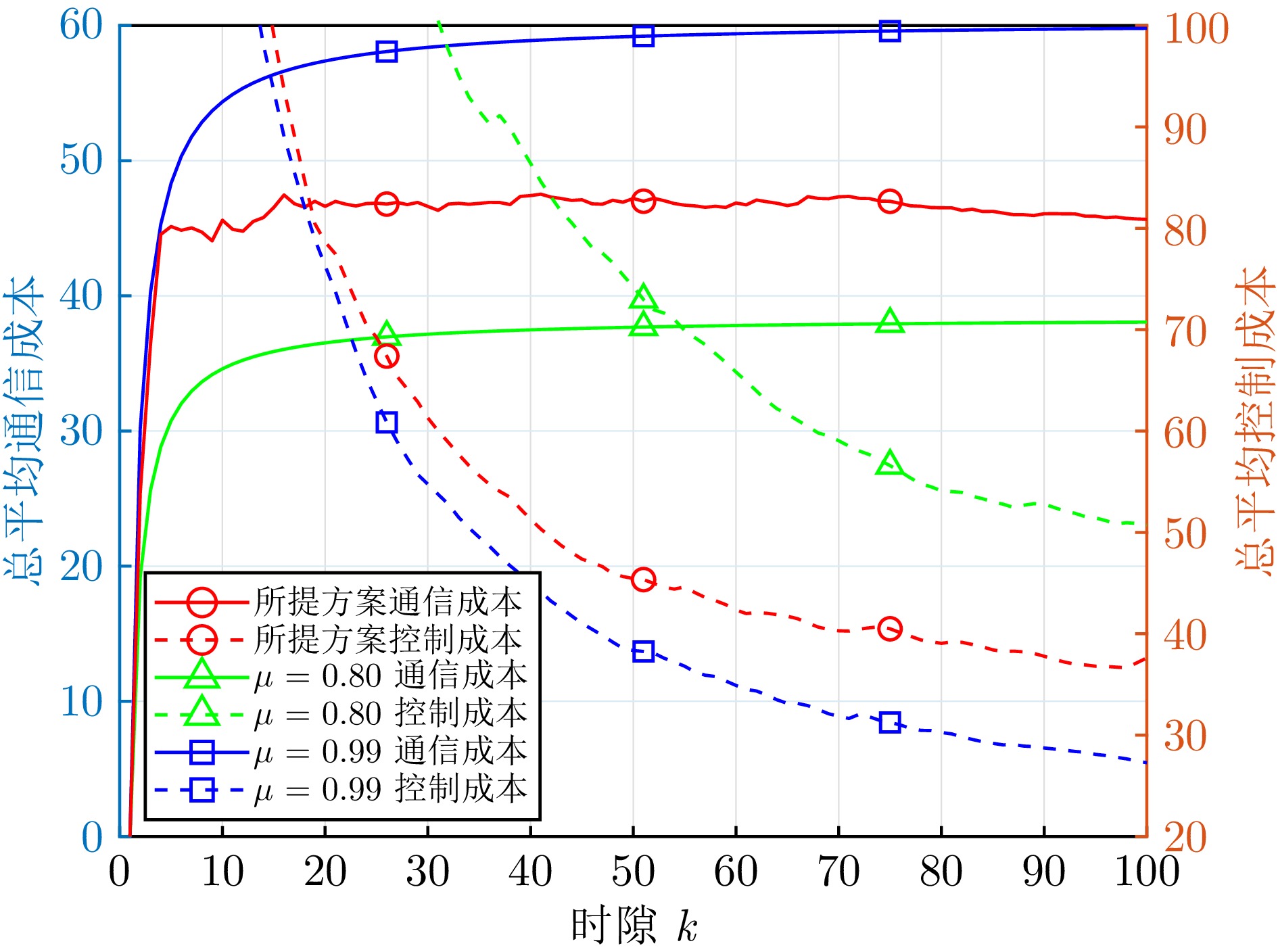在无线资源受限的情况下, 采用多波束技术来实现多个环路的同时控制是无线控制系统领域的技术难题. 在仅已知非完美信道状态信息的条件下, 提出一种联合鲁棒波束成形与设备调度算法, 保证控制稳定性的同时降低系统总成本. 首先, 以系统控制成本和通信成本的加权和最小化为目标函数, 以满足控制稳定性和发射功率限制为约束条件, 建立一个多个环路同时控制场景下的优化问题. 其次, 通过二次李雅普诺夫函数将稳定性约束转换为传输成功概率约束. 由于该非凸问题难以求解, 进一步提出控制成本与通信成本联合优化的双目标方案, 并基于怀特指数方法提出控制成本最小化的设备调度算法, 同时采用伯恩斯坦不等式和半正定规划等数学工具, 设计满足控制稳定性的通信成本最小化鲁棒波束成形算法. 最后, 计算机仿真表明, 所提方案相比于典型传输方案能够降低10% 至 41%的总成本, 实现通信与控制成本之间的良好折中.